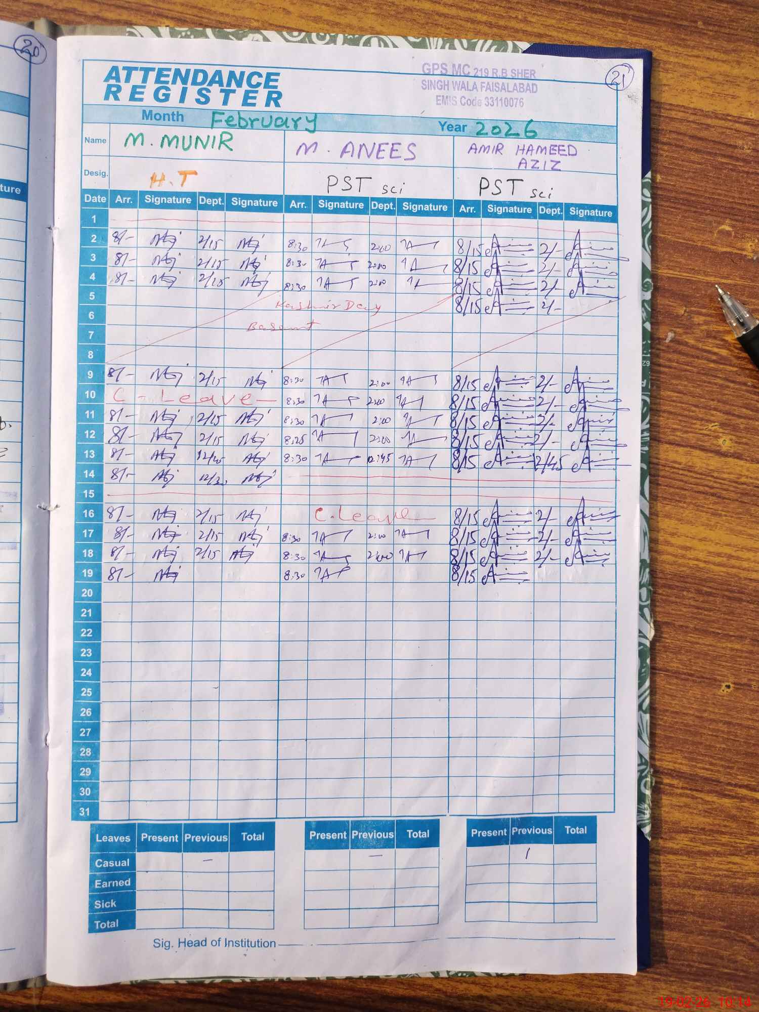 | EMIS Code: 33110076 | Name of School: GPS MC SHER SINGH WALLA FSD | |||