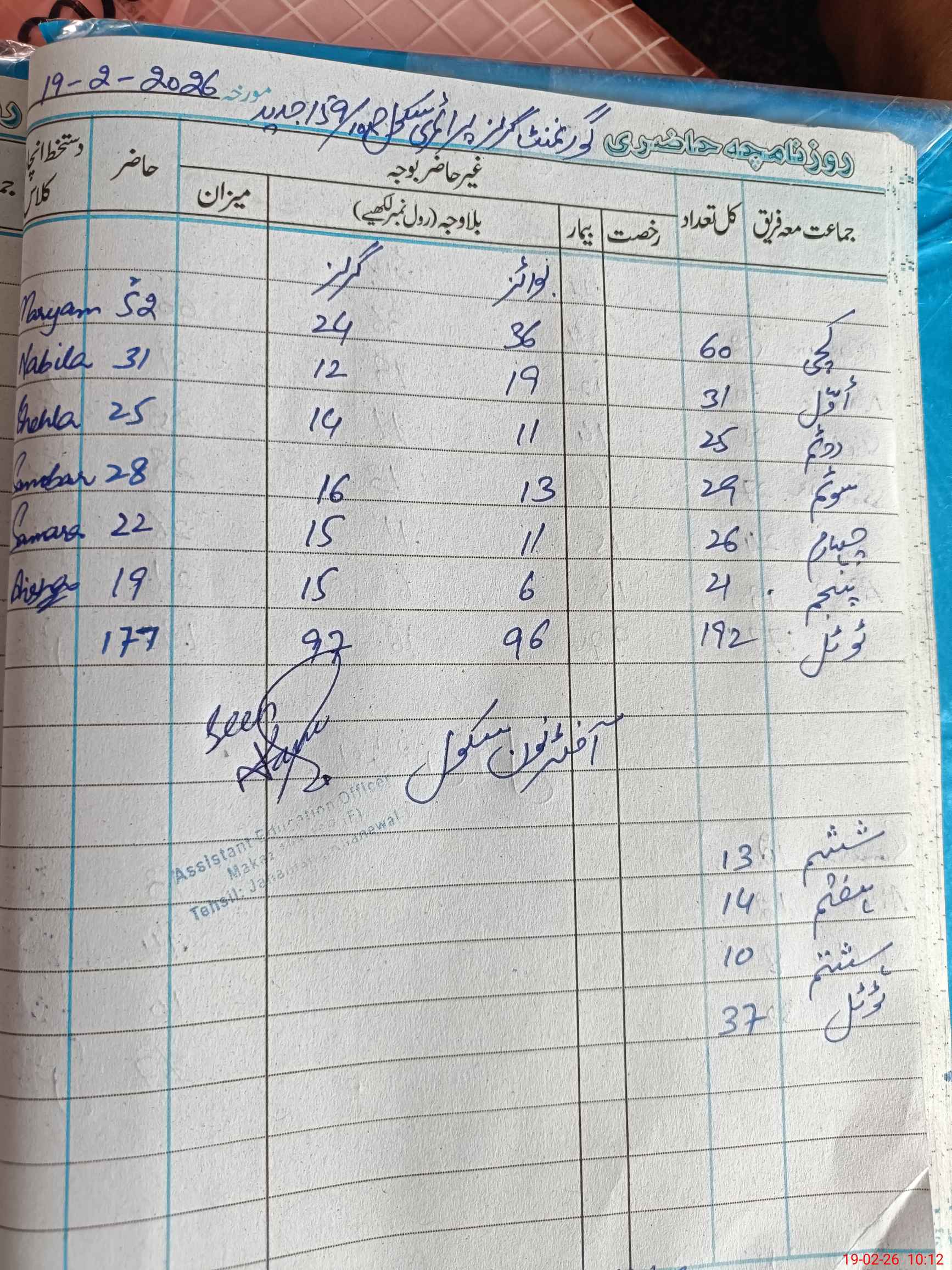 | EMIS Code: 36440525 | Name of School: GGPS 159/10-R JADEED, JAHANIAN | |||