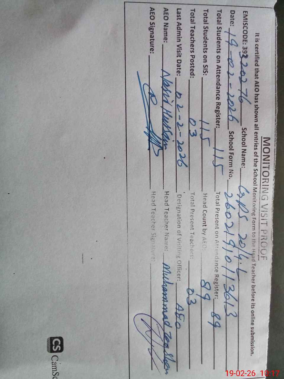 | Certified that this School was Inspected by the Undersigned MEA/DMO Today and the Information Stated Above is as Per Record. | |||||