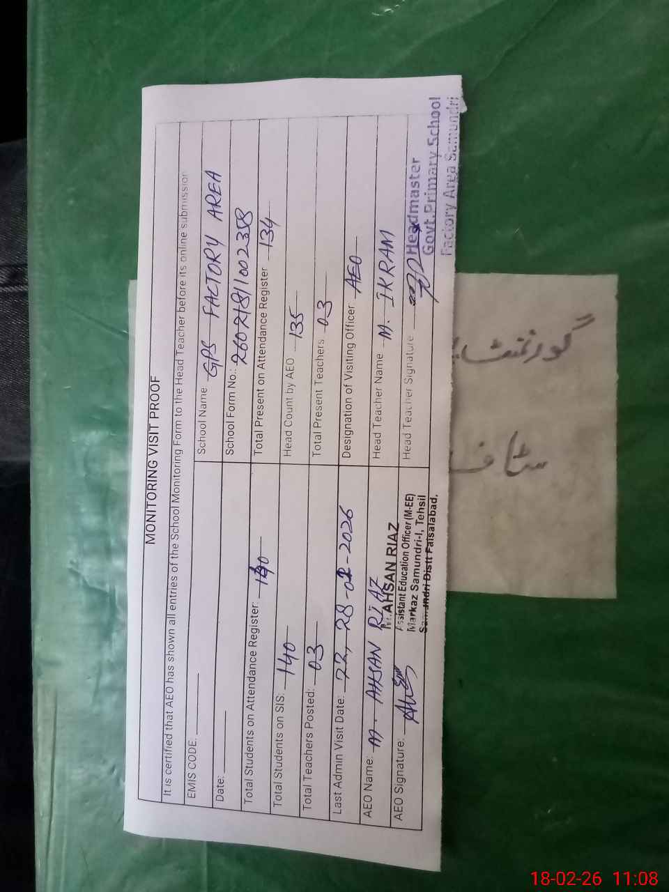 | EMIS Code: 33130110 | Name of School: GPS FACTIRY AREA | |||
