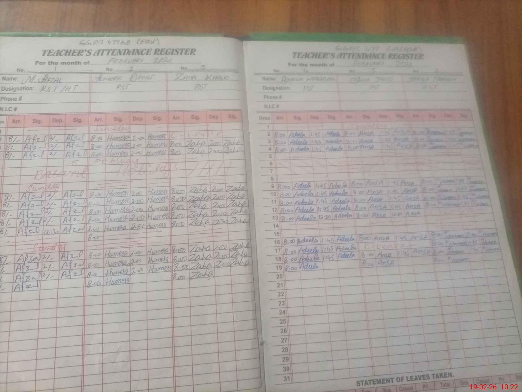 | Leave | Duty | Absent | Maternity | Medical | Ex- Pak |