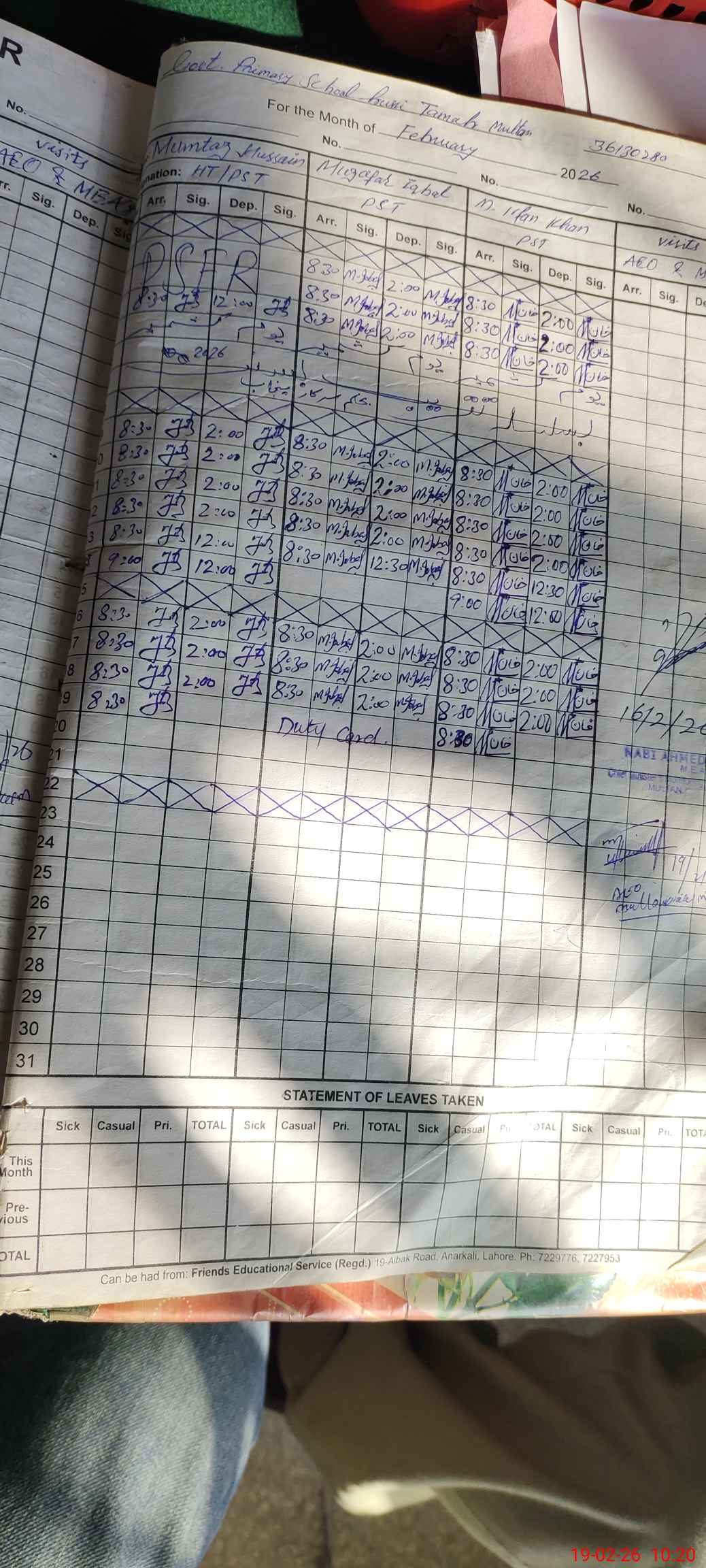 | Attendance Register | Head Teacher | MEA with School | Visit Proof |