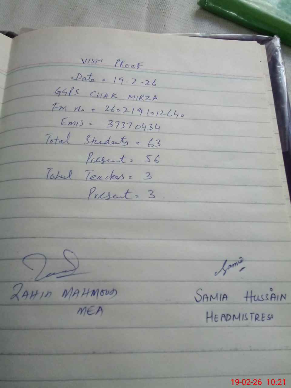 | EMIS Code: 37370434 | Name of School: GGPS CHAK MIRZA | |||