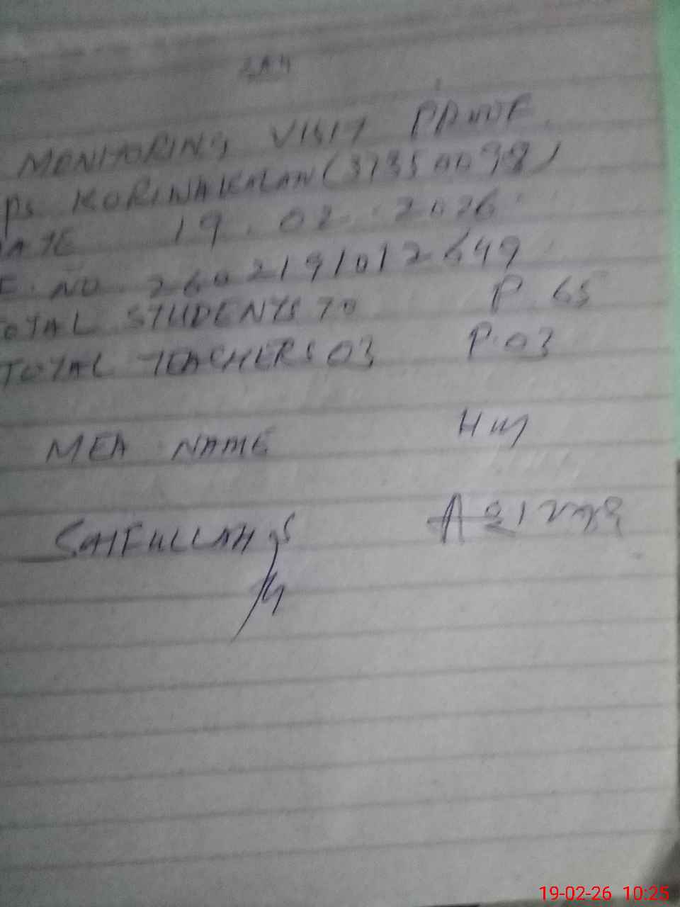 | Certified that this School was Inspected by the Undersigned MEA/DMO Today and the Information Stated Above is as Per Record. | |||||