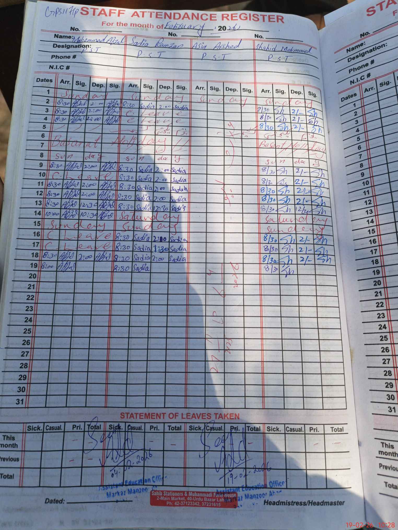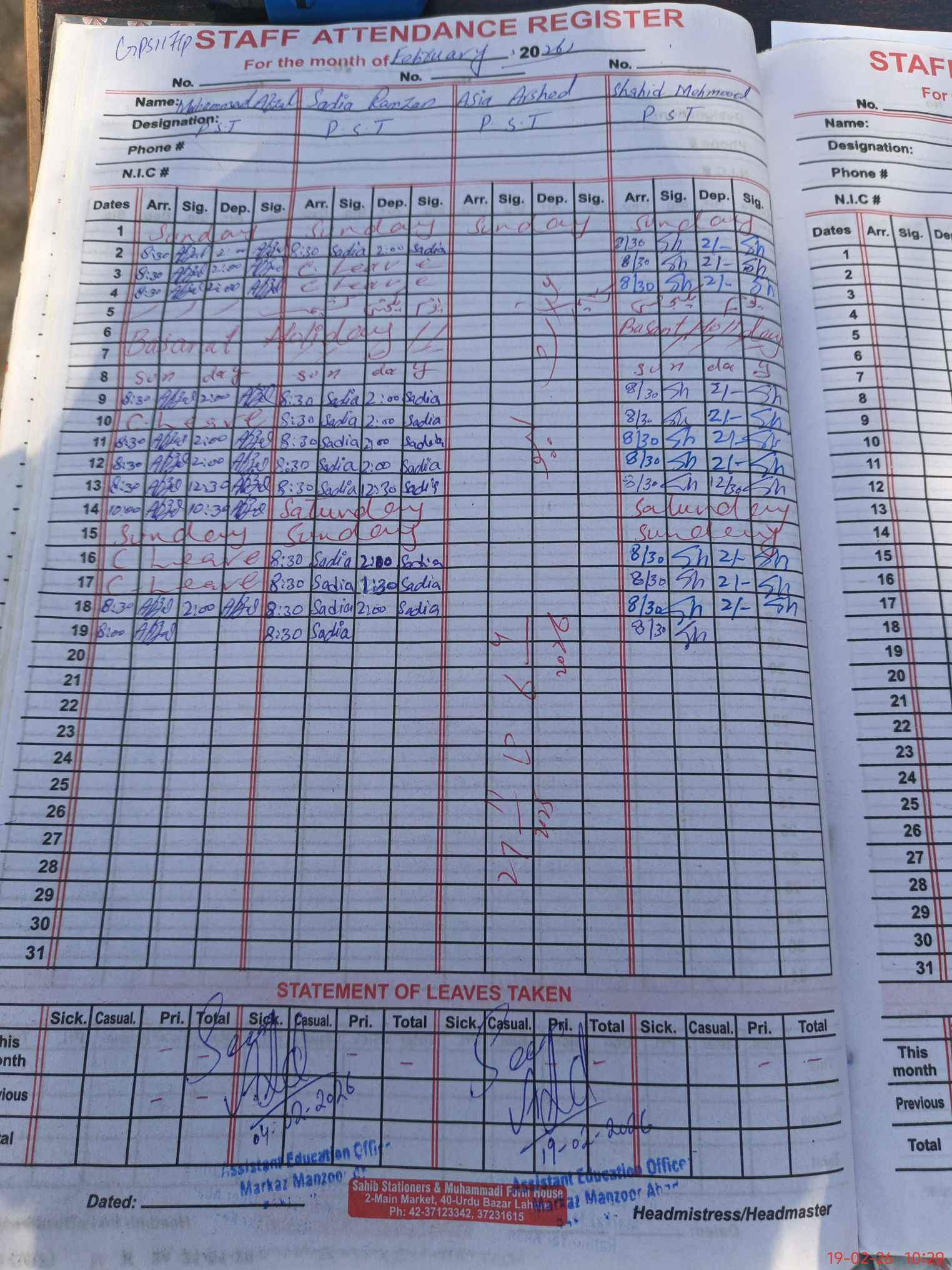| Name: M.AF**** Designation: (School Headmaster's/Headmistress's) PST Phone/Cell Number: 03**** |