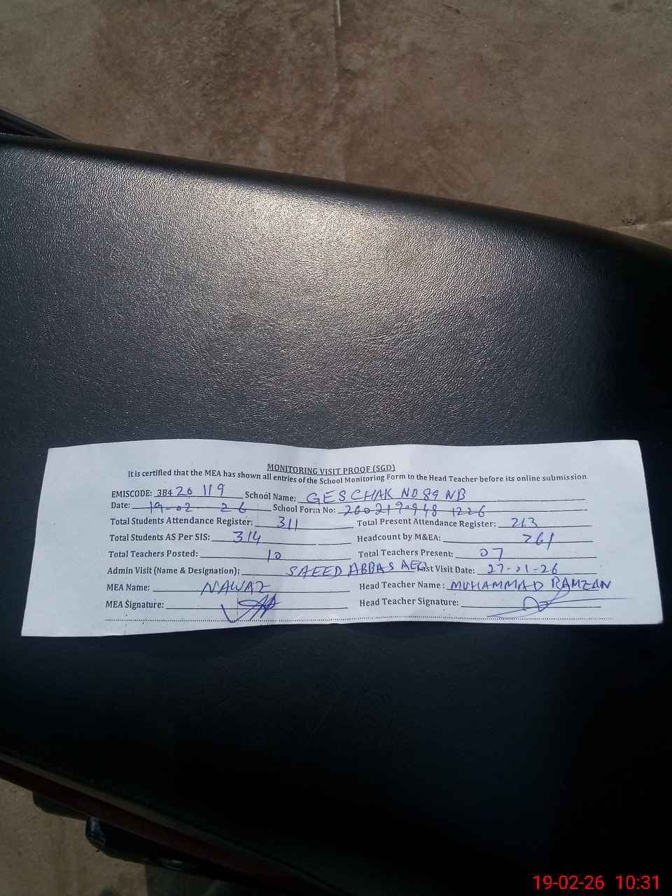 | EMIS Code: 38420119 | Name of School: GES CHAK NO.89 NB | |||