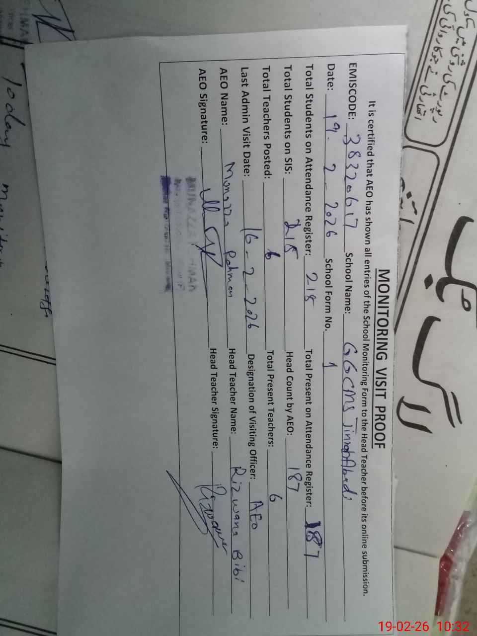 | Certified that this School was Inspected by the Undersigned MEA/DMO Today and the Information Stated Above is as Per Record. | |||||
