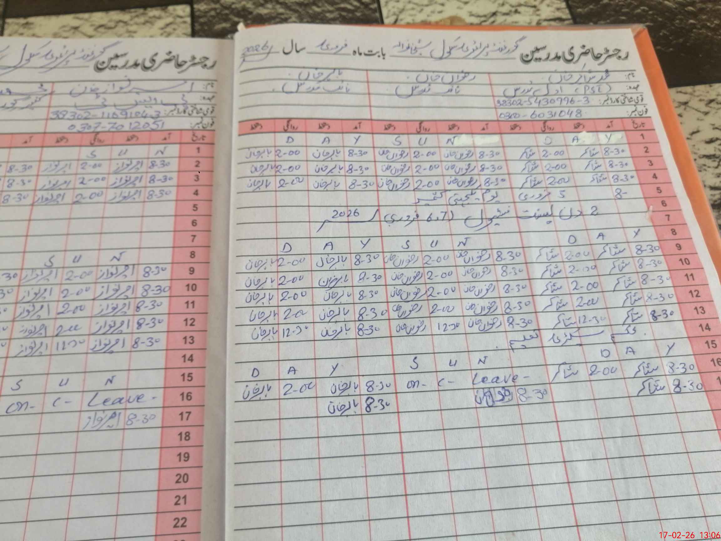 | CNIC | Full Name | Designation | R/C | Absence During Last Calender Month |