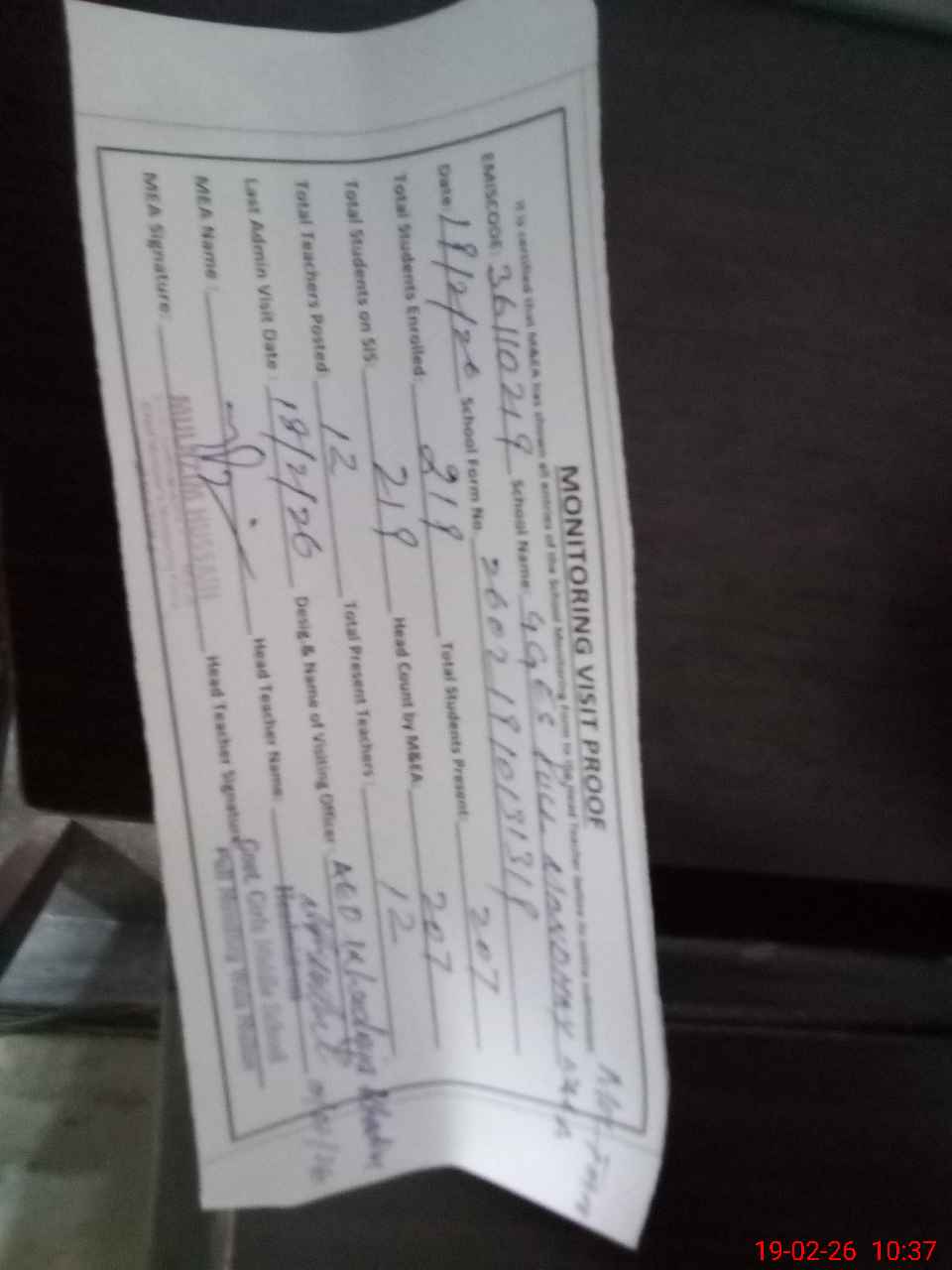 | Certified that this School was Inspected by the Undersigned MEA/DMO Today and the Information Stated Above is as Per Record. | |||||