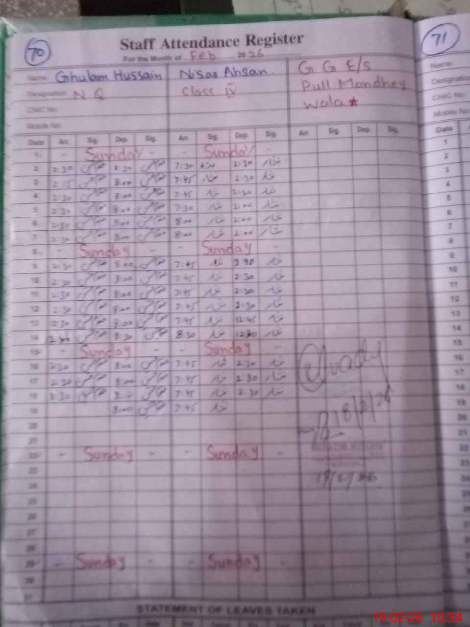 | Name: NA**** IQ**** Designation: (School Headmaster's/Headmistress's) S.S.T.(SC) Phone/Cell Number: 03**** |