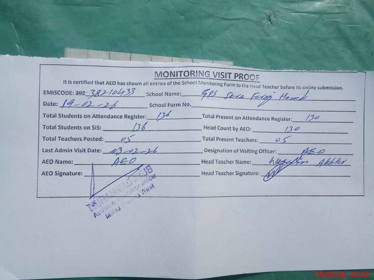| EMIS Code: 38210433 | Name of School: GPS DERA FEROZ HAMDI | |||