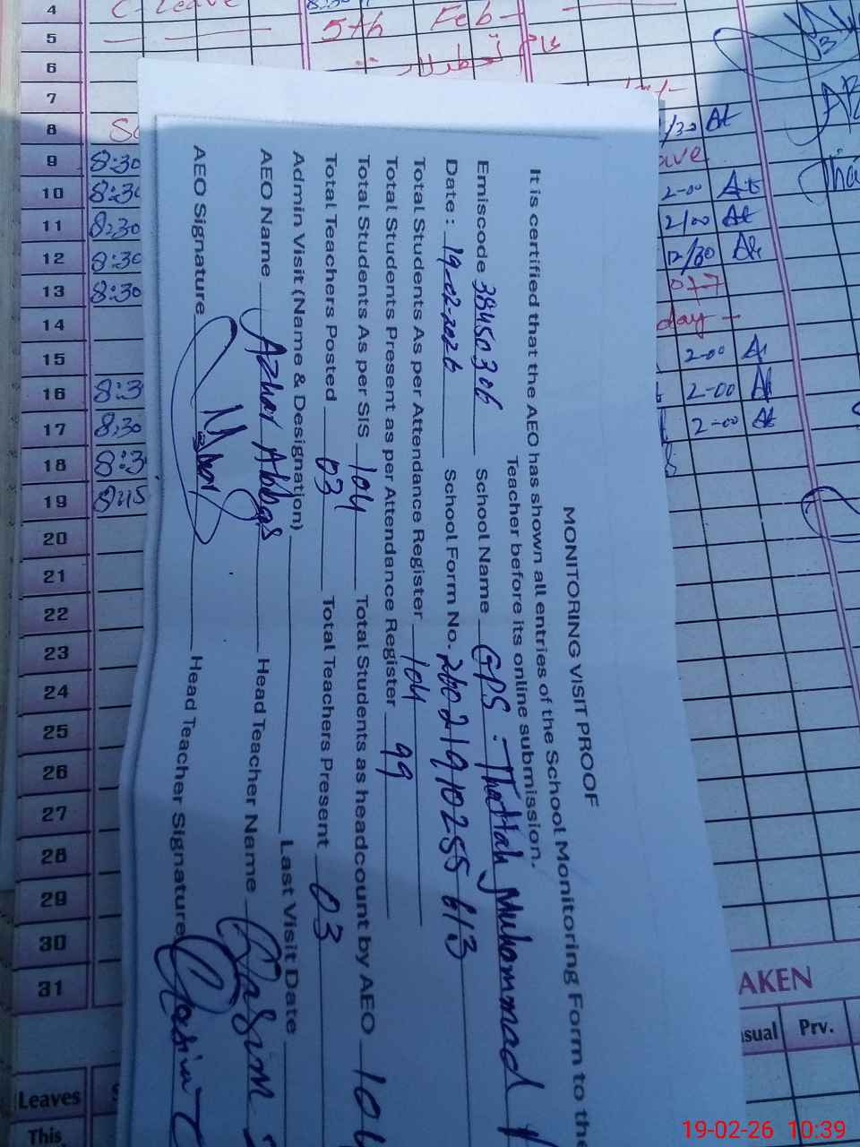 | EMIS Code: 38450306 | Name of School: GPS THATHA MUHAMMAD PANAH | |||