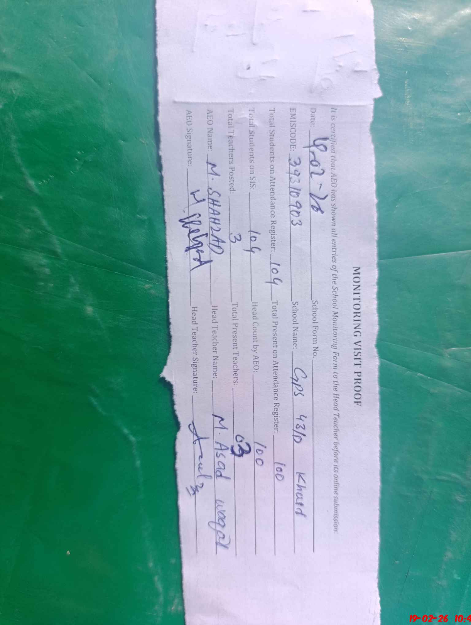 | EMIS Code: 39310903 | Name of School: GPS CHAK 43 D KHURD | |||