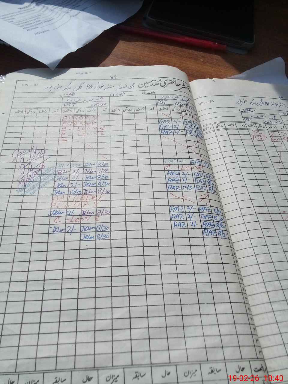 | Leave | Duty | Absent | Maternity | Medical | Ex- Pak |