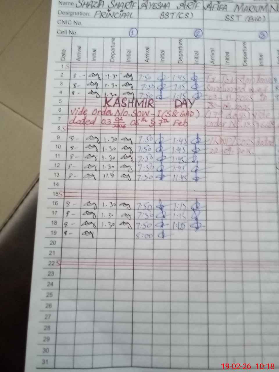 | 34**** | Ai**** Qa**** | PST Arts | Regular | 0 | 0 | 0 | 0 | 0 | 0 | 0 | 0 | 0 | Absent (Un-Authorized) |