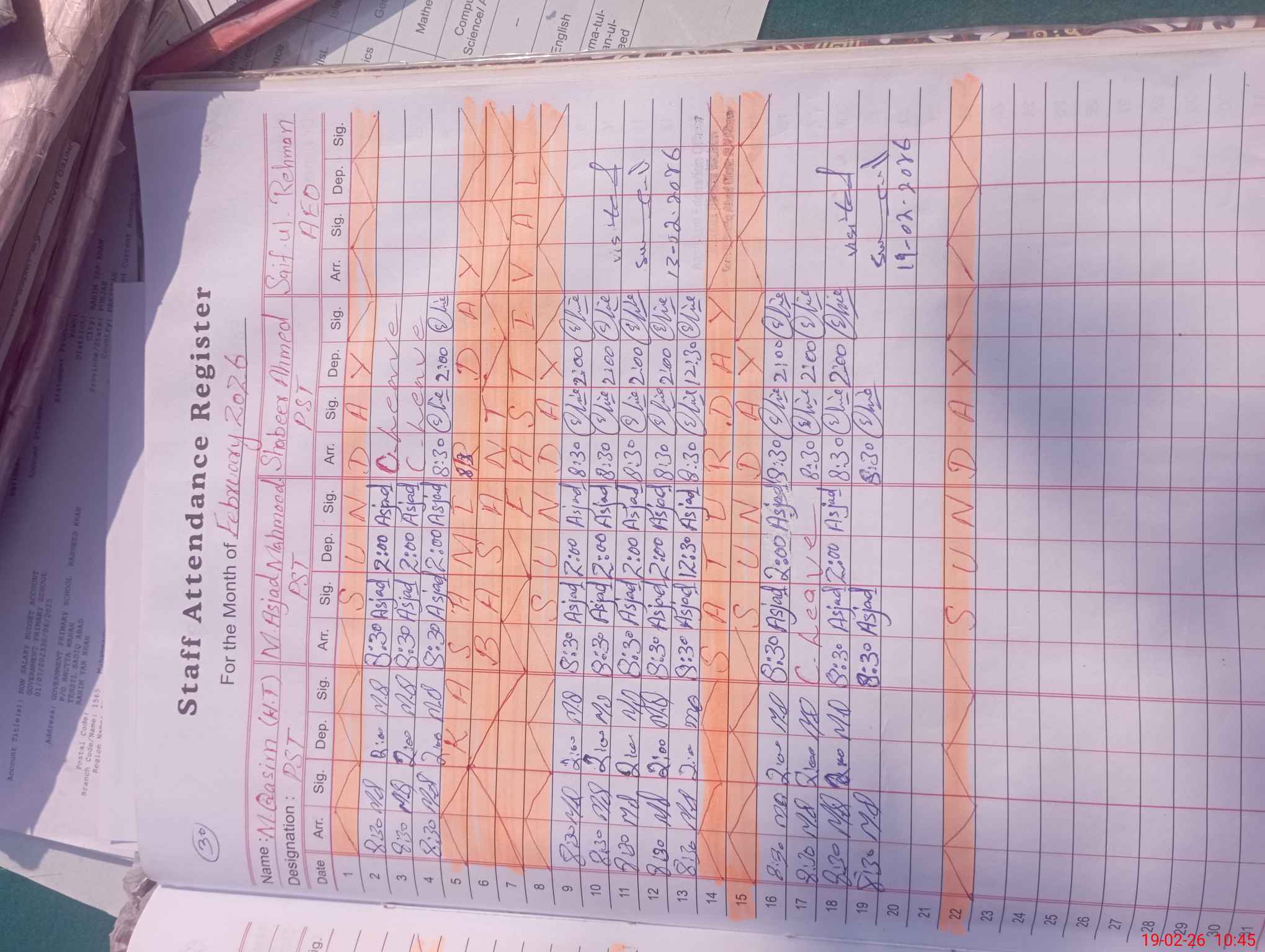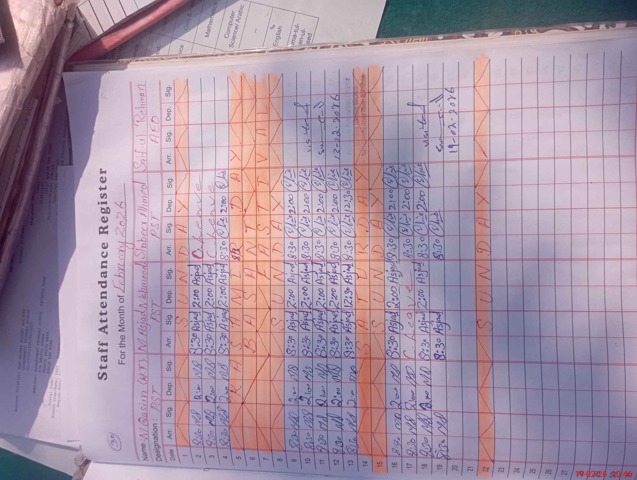 | Name: M.**** Designation: (School Headmaster's/Headmistress's) PST Phone/Cell Number: 03**** |