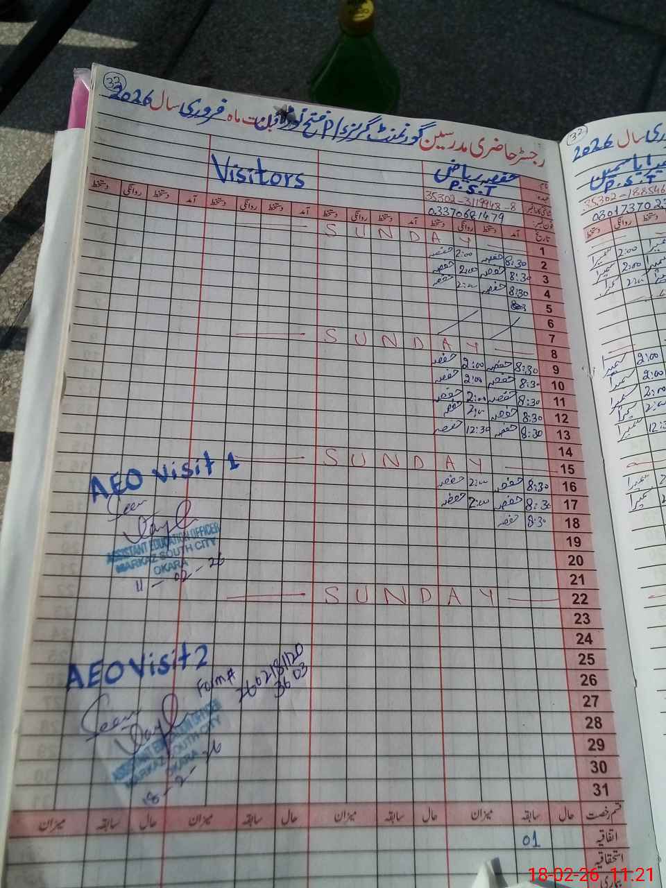 | District: OKARA | Tehsil: OKARA | Markaz: SOUTH CITY - FEMALE | Level: Primary | |