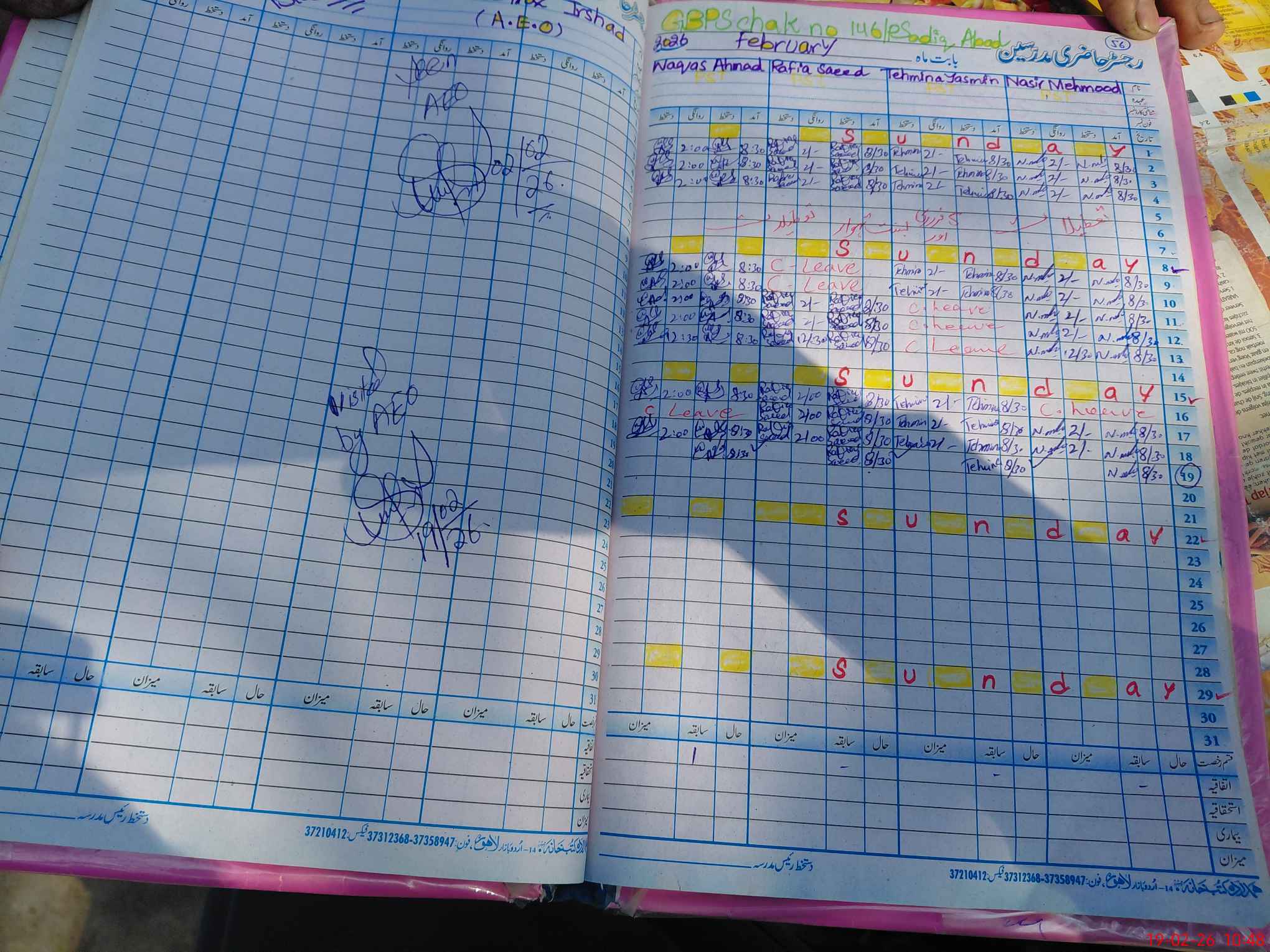 | School Visited by School Health & Nutrition Supervisor (No. of Visits) | Name1: | Amna Atta | Name2: | ||