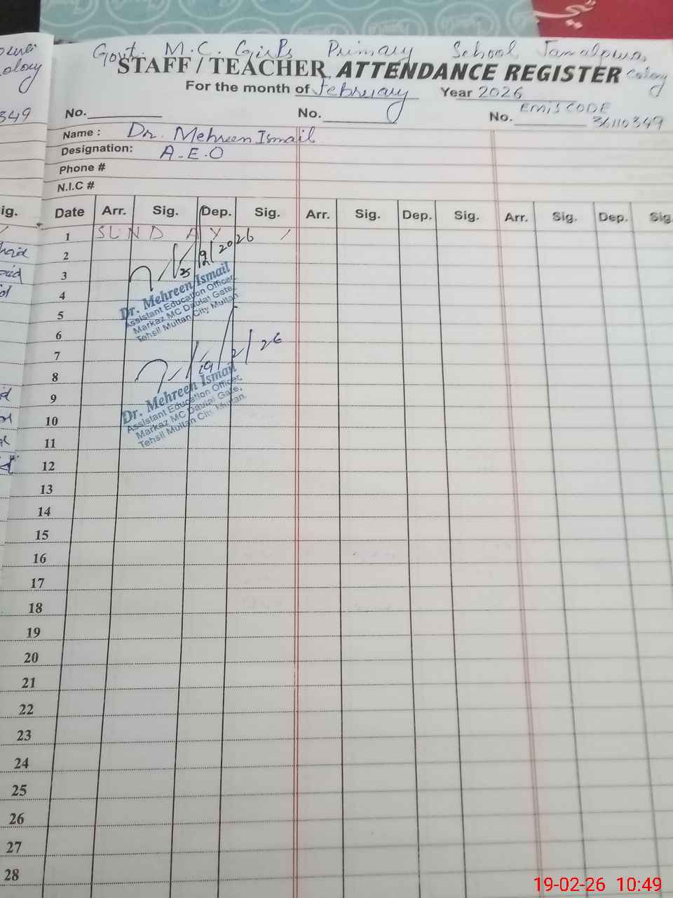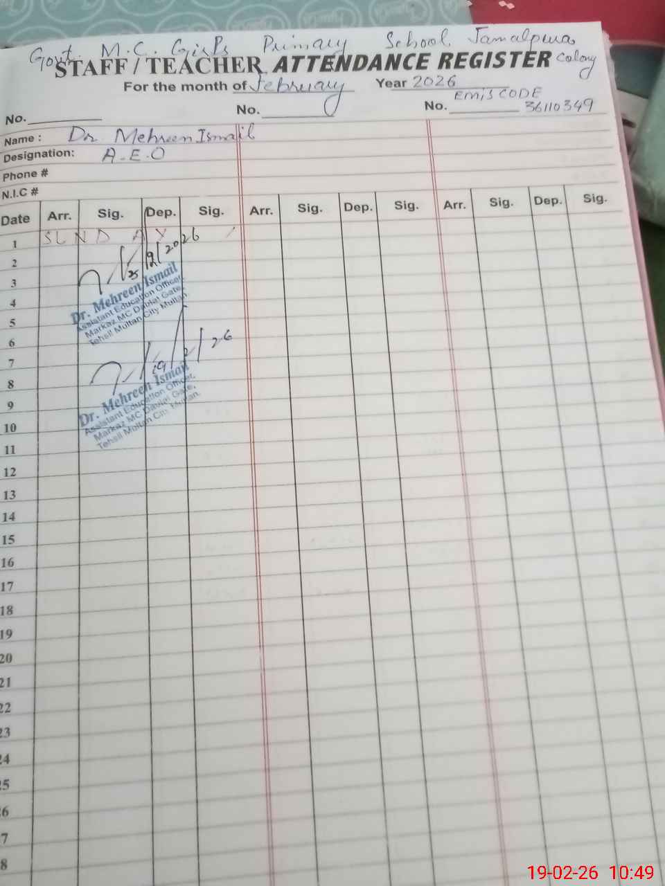 | EMIS Code: 36110349 | Name of School: GGPS MC JAMAL PURA | |||