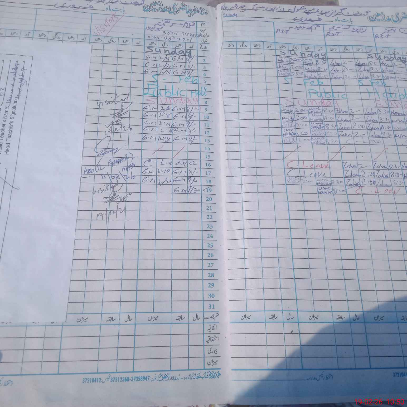 | Name: UM**** HA**** Designation: (School Headmaster's/Headmistress's) PST Phone/Cell Number: 03**** |