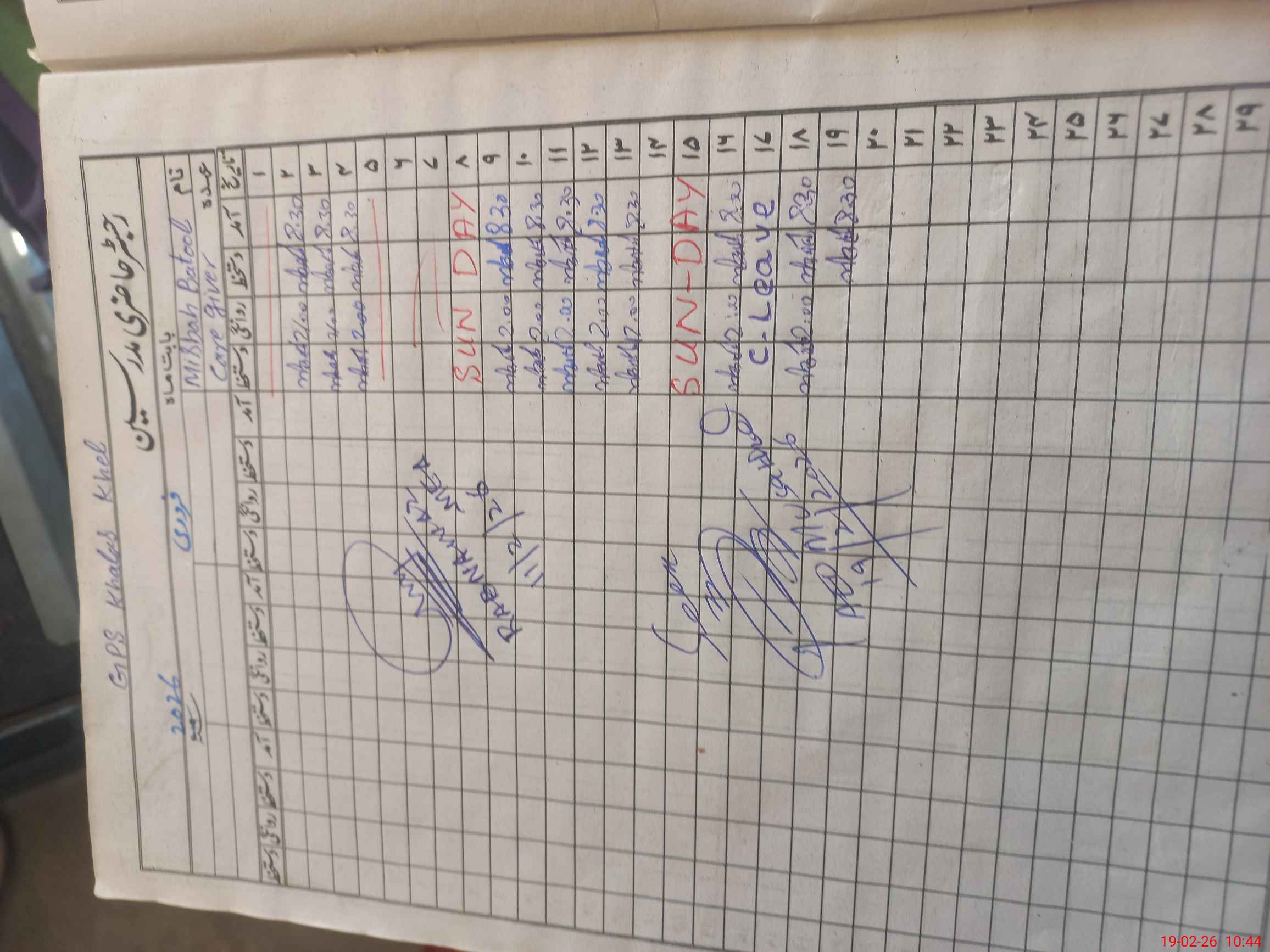 | CNIC | Full Name | Designation | R/C | Absence During Last Calender Month |