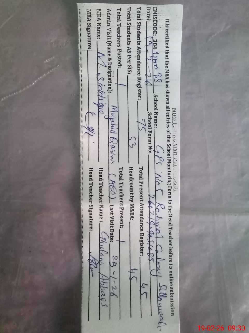| EMIS Code: 38440098 | Name of School: GPS NO.5 RAHMAT COLONY SILLANWALI | |||