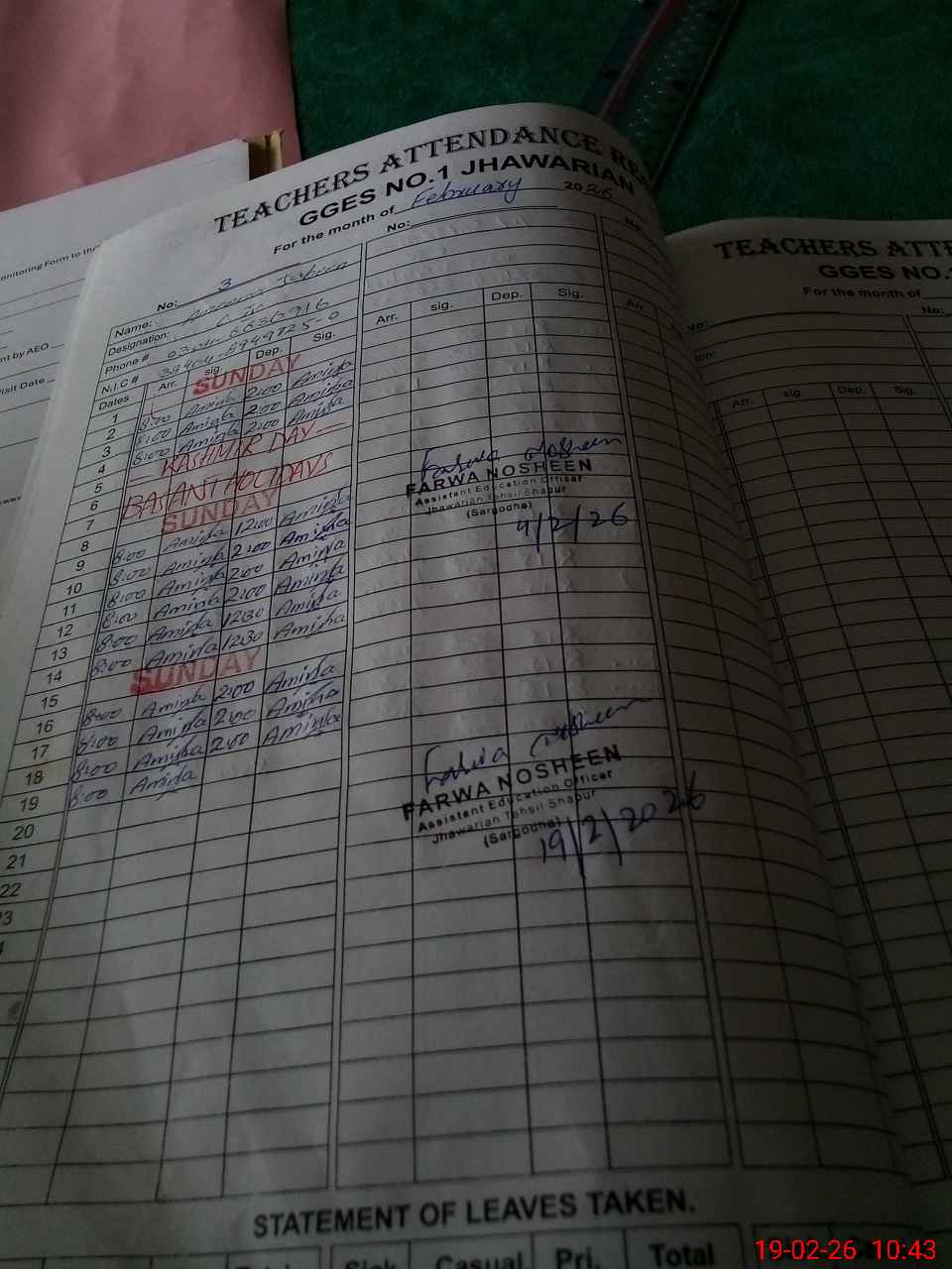 | Name: AS**** IQ**** Designation: (School Headmaster's/Headmistress's) EST PET Incharge Phone/Cell Number: 03**** |