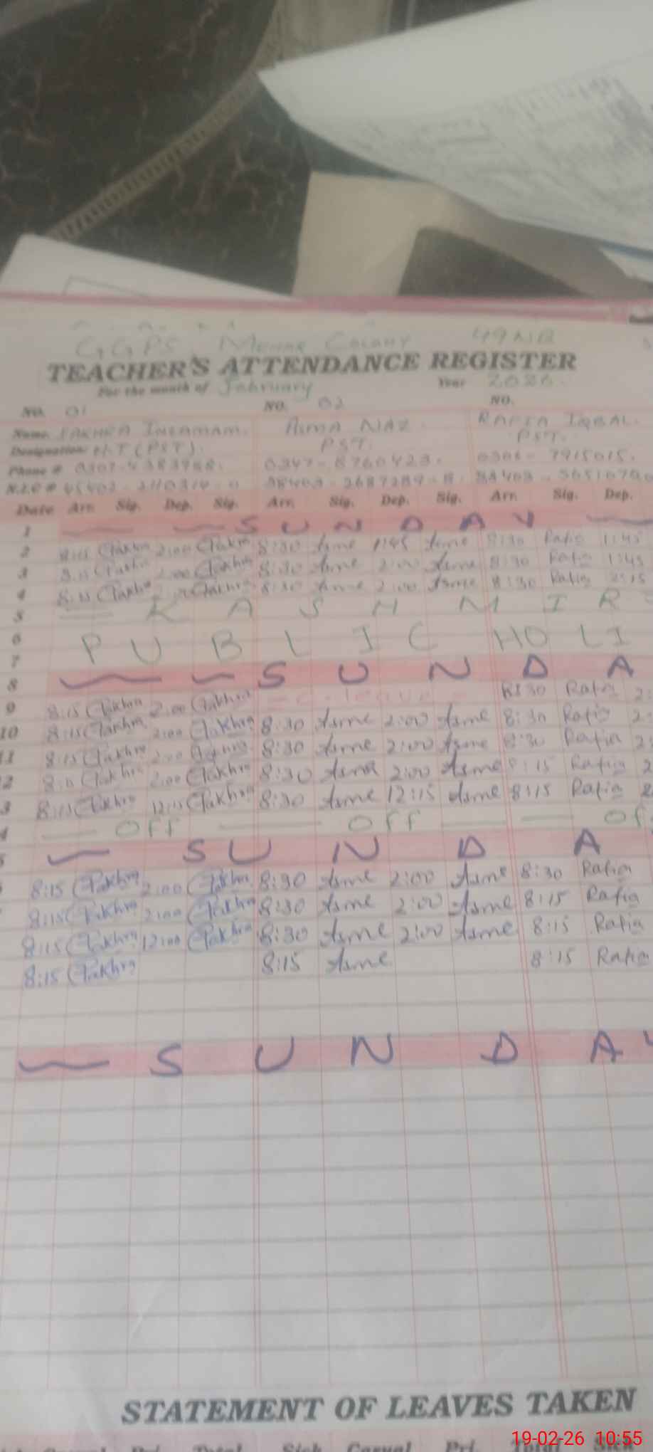| Name: FA**** IN**** Designation: (School Headmaster's/Headmistress's) PST Phone/Cell Number: 03**** |