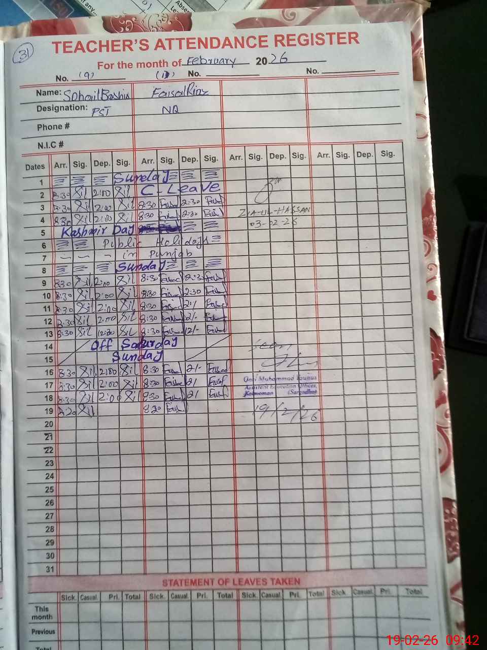 | Name: Mu**** Eh**** Designation: (School Headmaster's/Headmistress's) SST ARTS Phone/Cell Number: 03**** |