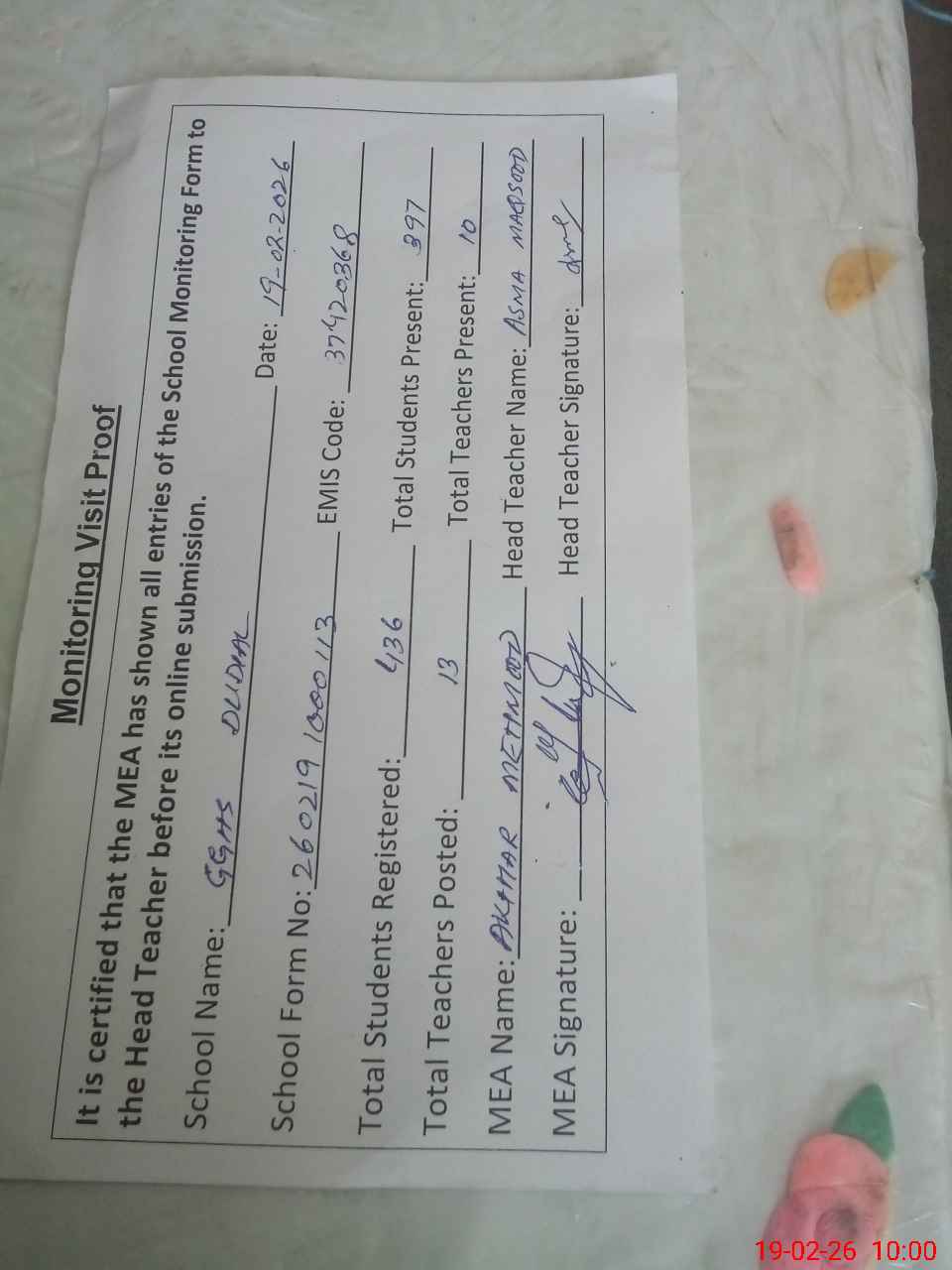 | Certified that this School was Inspected by the Undersigned MEA/DMO Today and the Information Stated Above is as Per Record. | |||||