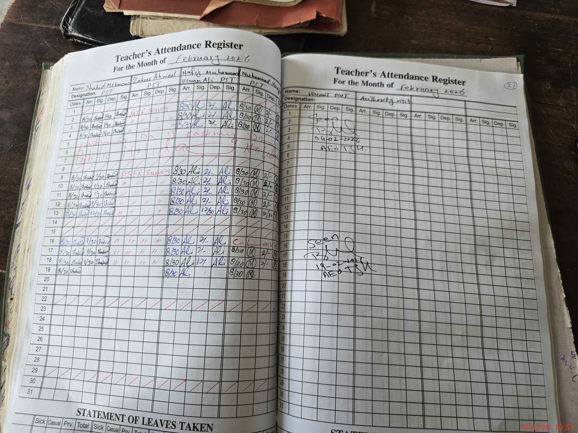 | Attendance Register | Head Teacher | MEA with School | Visit Proof |