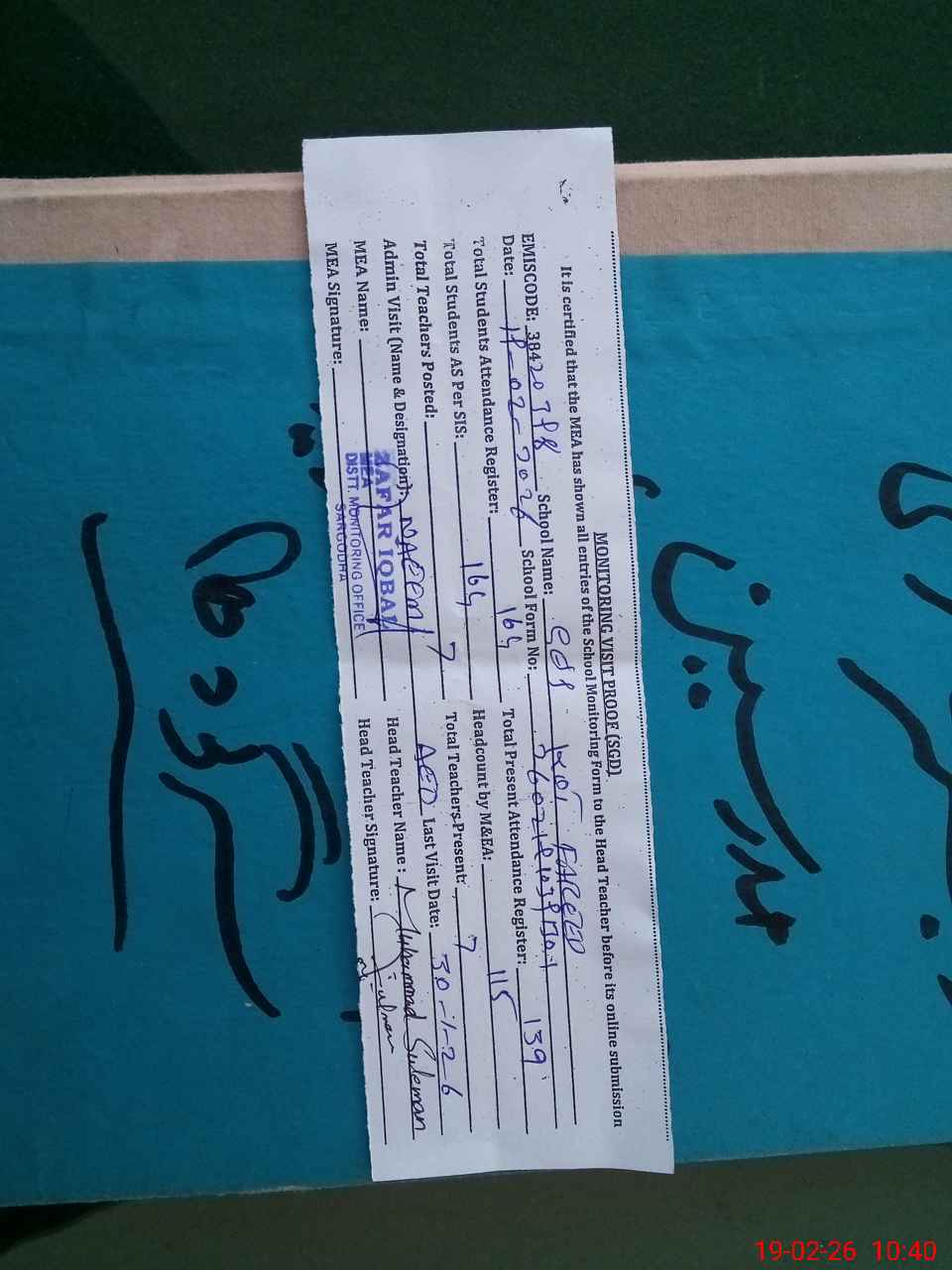 | EMIS Code: 38420398 | Name of School: GES MC KOT FAREED SARGODHA | |||