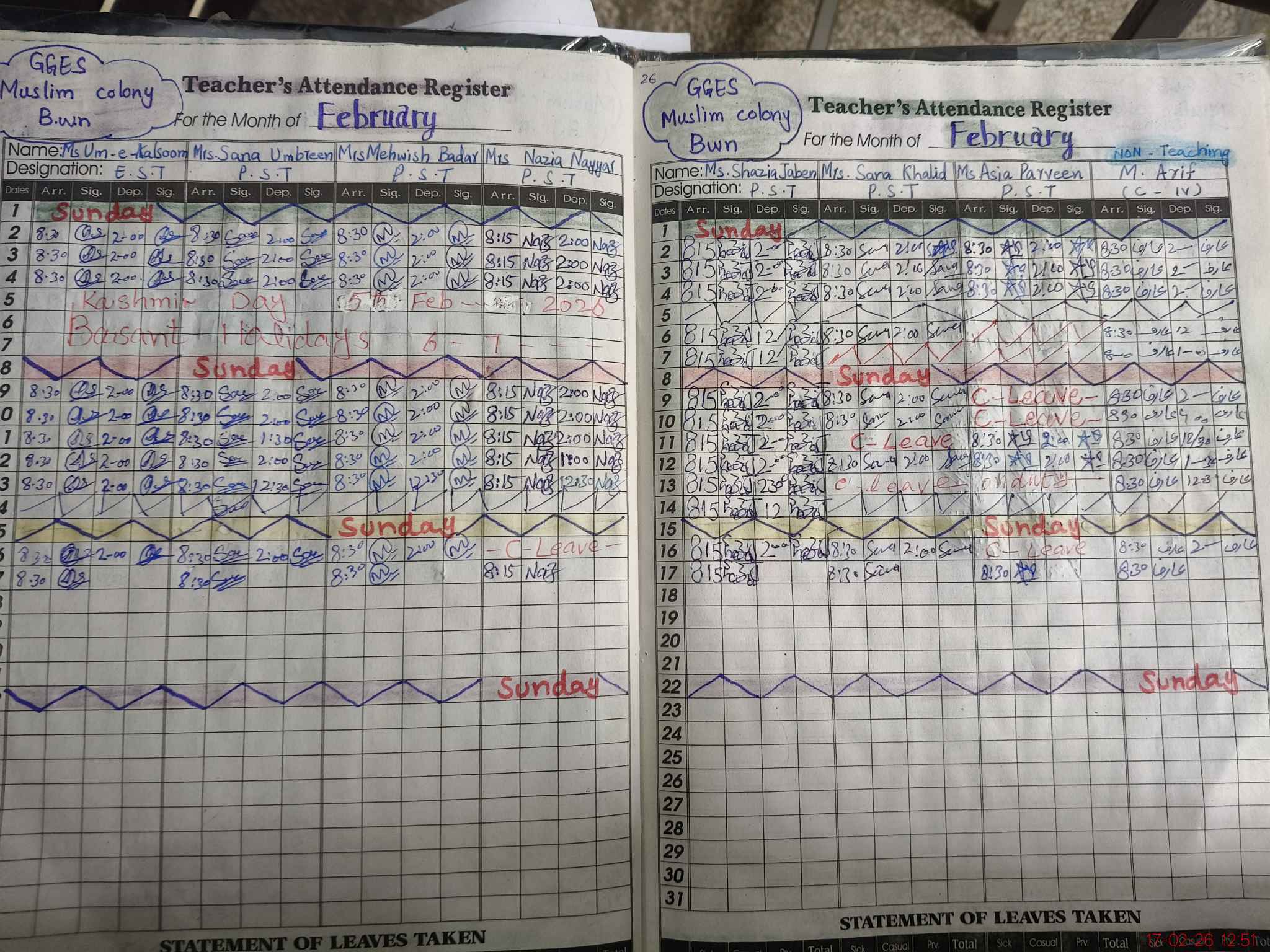 | Leave | Duty | Absent | Maternity | Medical | Ex- Pak |