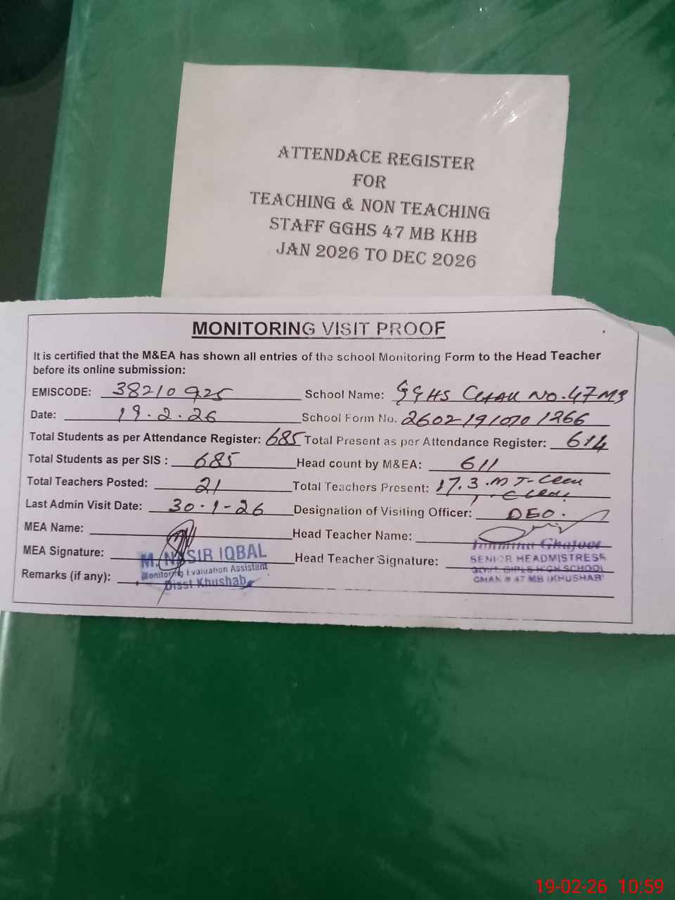 | EMIS Code: 38210925 | Name of School: GGHS CHAK NO 47 MB | |||