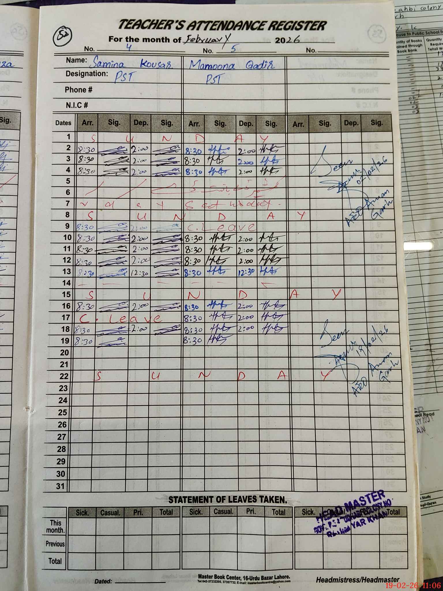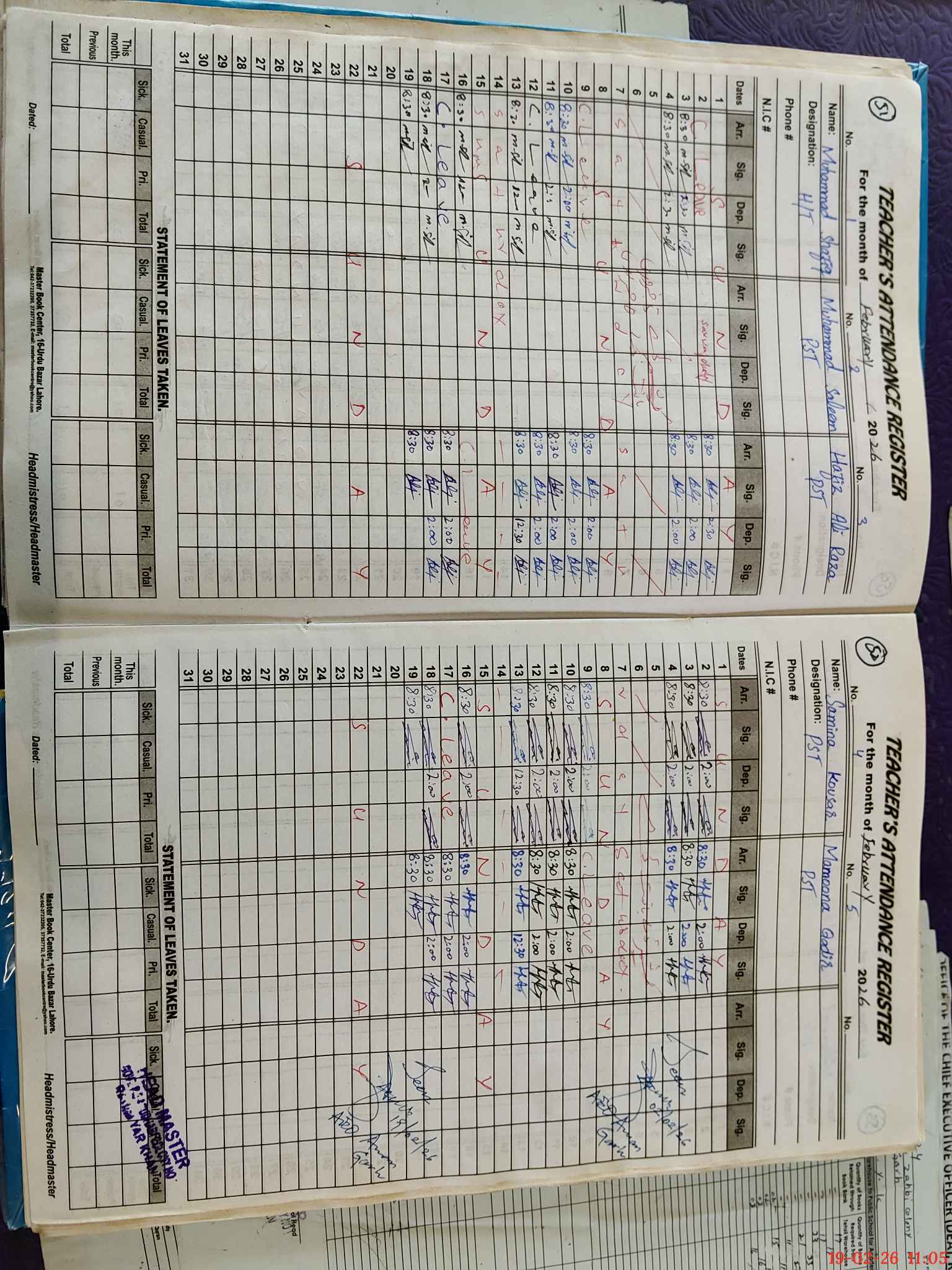 | Name: Mo**** SH**** Designation: (School Headmaster's/Headmistress's) PST/PTC/JV Phone/Cell Number: 03**** |