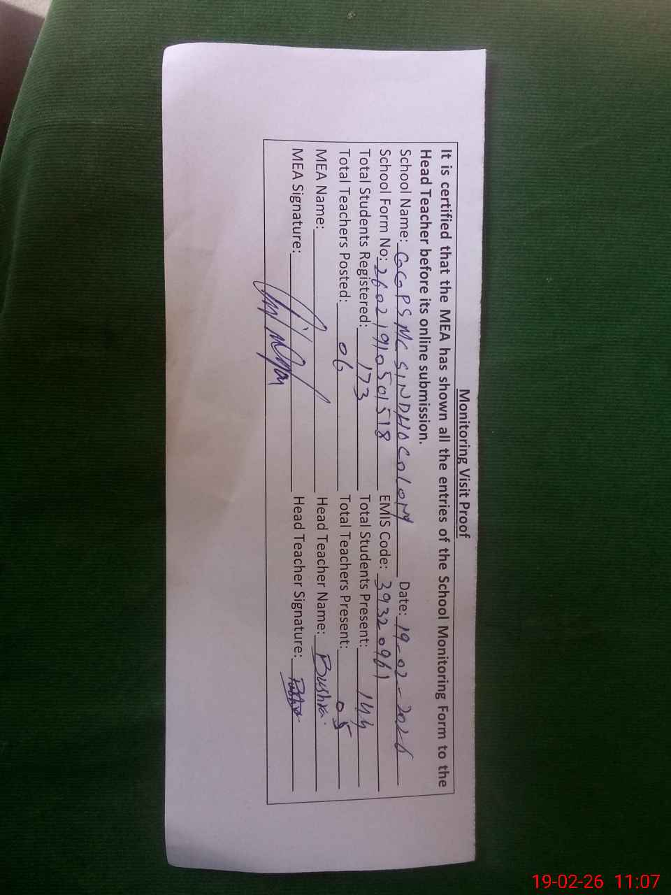 | EMIS Code: 39320961 | Name of School: GGPS MC SINDHO COLONY | |||