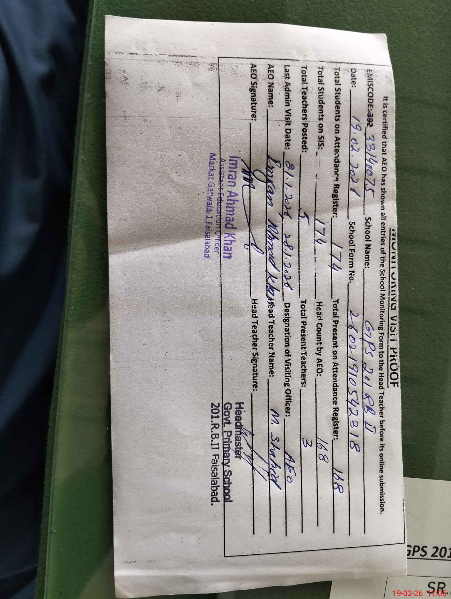 | EMIS Code: 33140076 | Name of School: GPS CHAK 201 RB II | |||