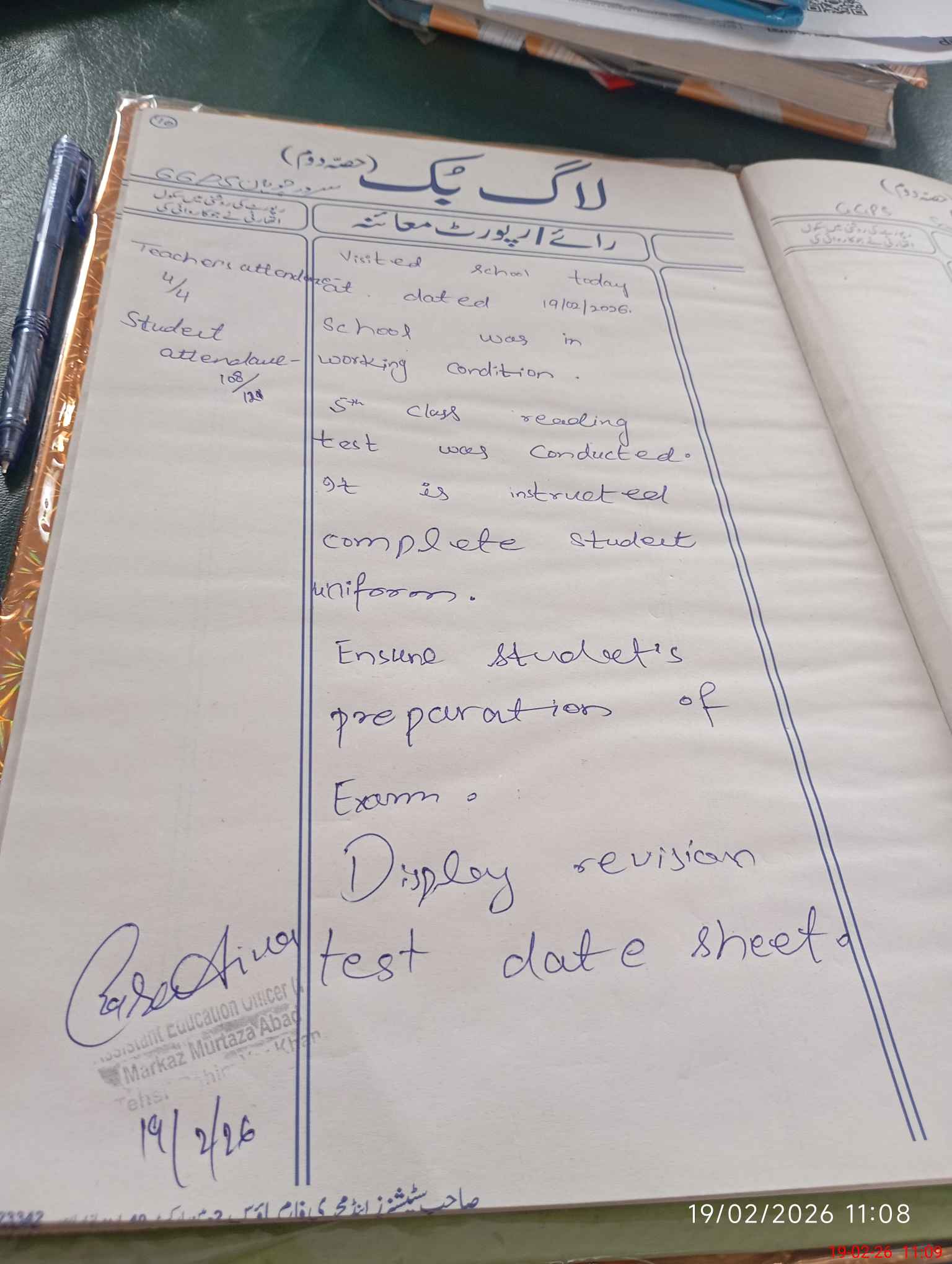 | Certified that this School was Inspected by the Undersigned MEA/DMO Today and the Information Stated Above is as Per Record. | |||||