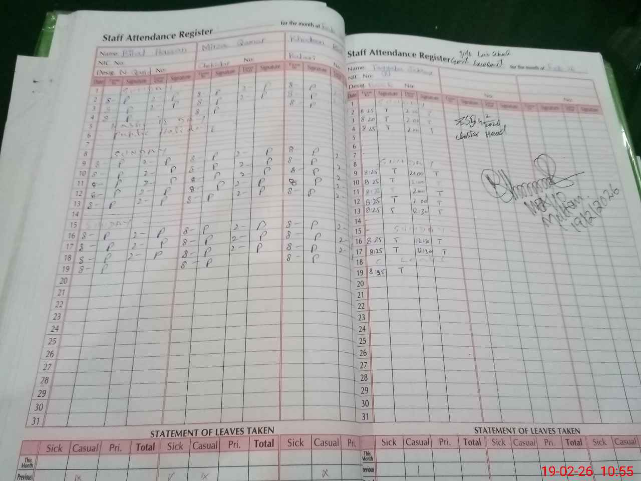 | 32**** | Ha**** Ba**** | SS English | Regular | 0 | 0 | 0 | 0 | 0 | 0 | 0 | 0 | 0 | Absent (Un-Authorized) |