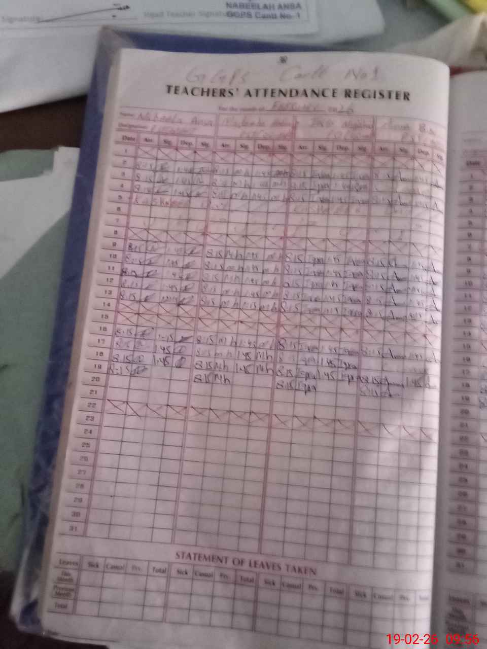 | Leave | Duty | Absent | Maternity | Medical | Ex- Pak |