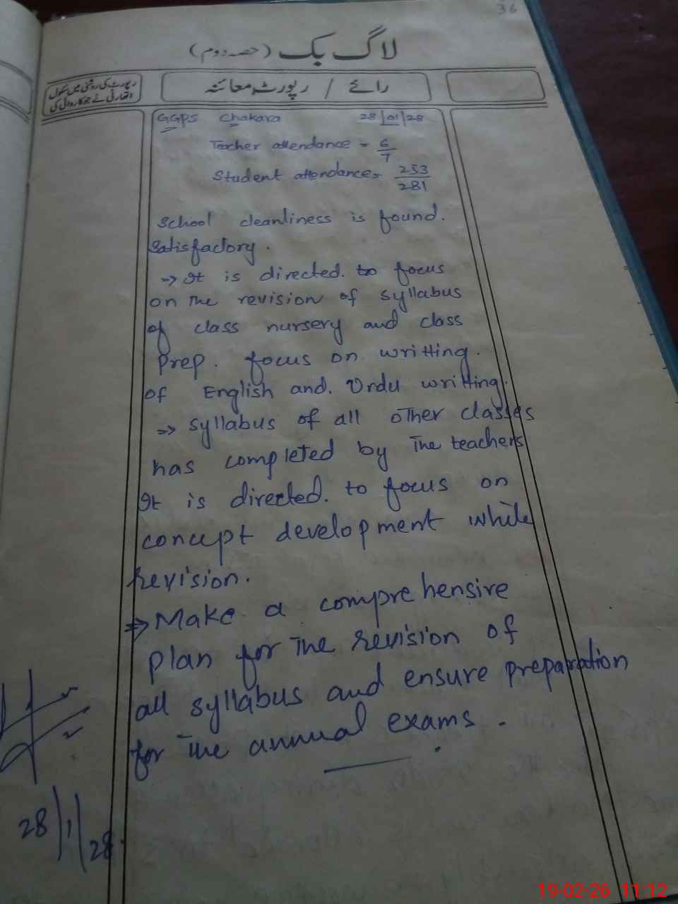 | Certified that this School was Inspected by the Undersigned MEA/DMO Today and the Information Stated Above is as Per Record. | |||||