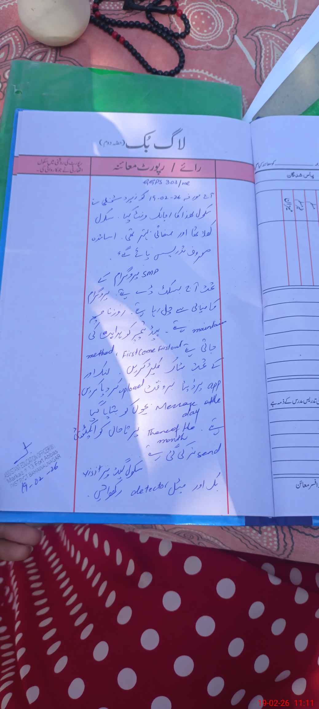 | Certified that this School was Inspected by the Undersigned MEA/DMO Today and the Information Stated Above is as Per Record. | |||||