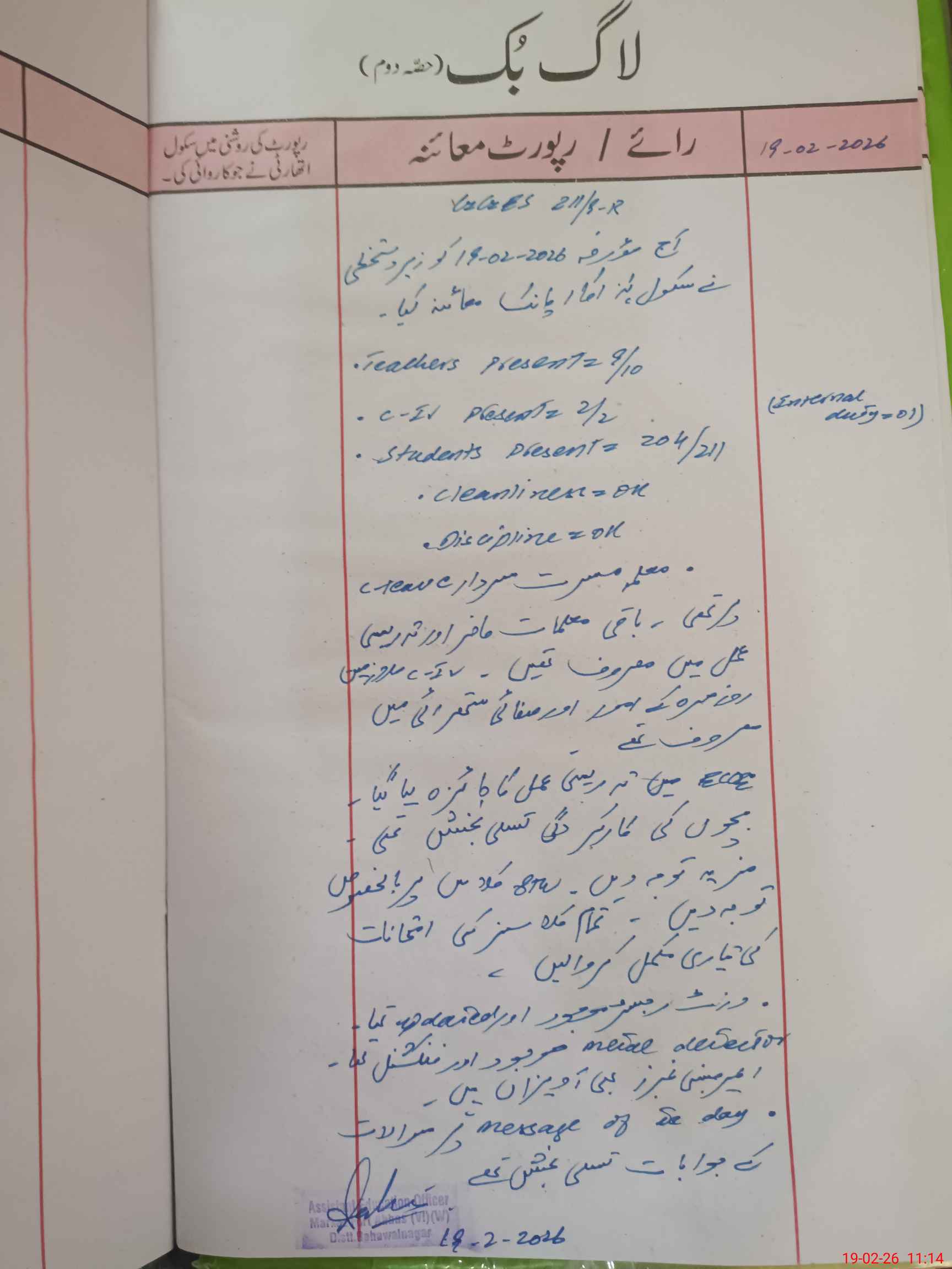 | Certified that this School was Inspected by the Undersigned MEA/DMO Today and the Information Stated Above is as Per Record. | |||||