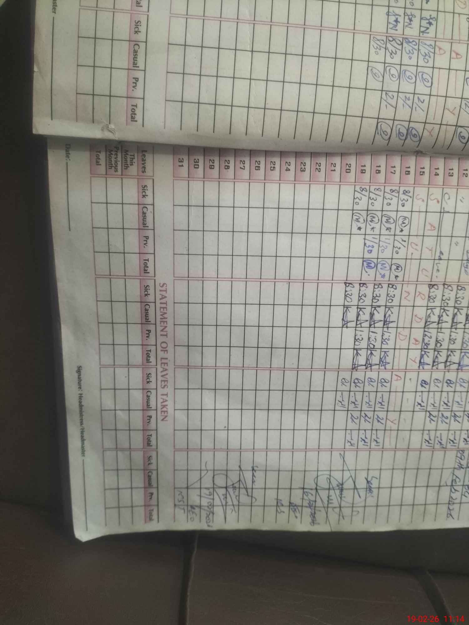 | Attendance Register | Head Teacher | MEA with School | Visit Proof |