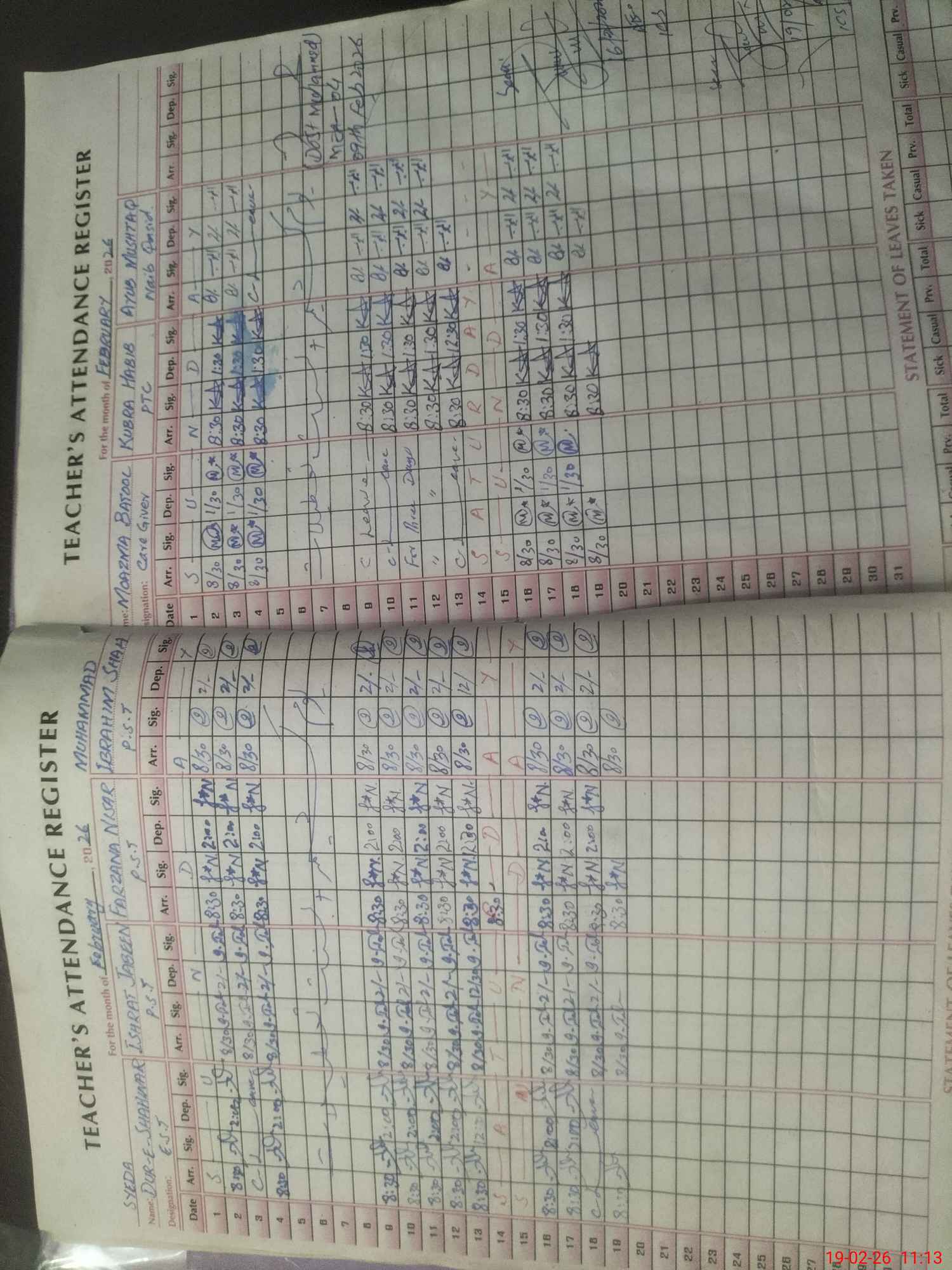 | CNIC | Full Name | Designation | R/C | Absence During Last Calender Month |