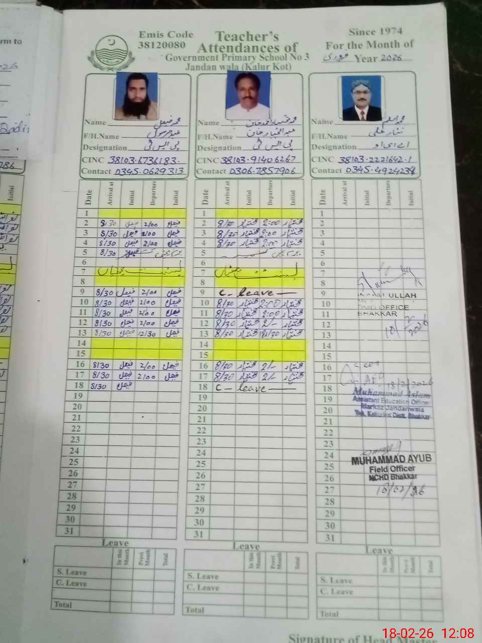 | EMIS Code: 38120080 | Name of School: GPS JANDAN WALA NO.3 | |||
