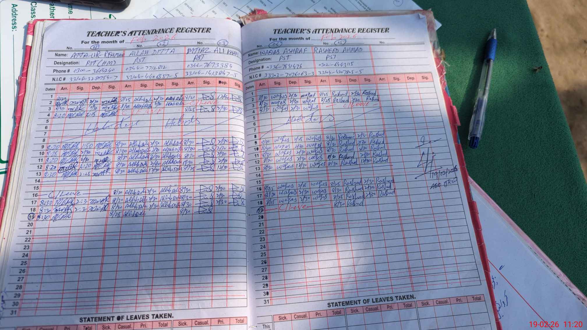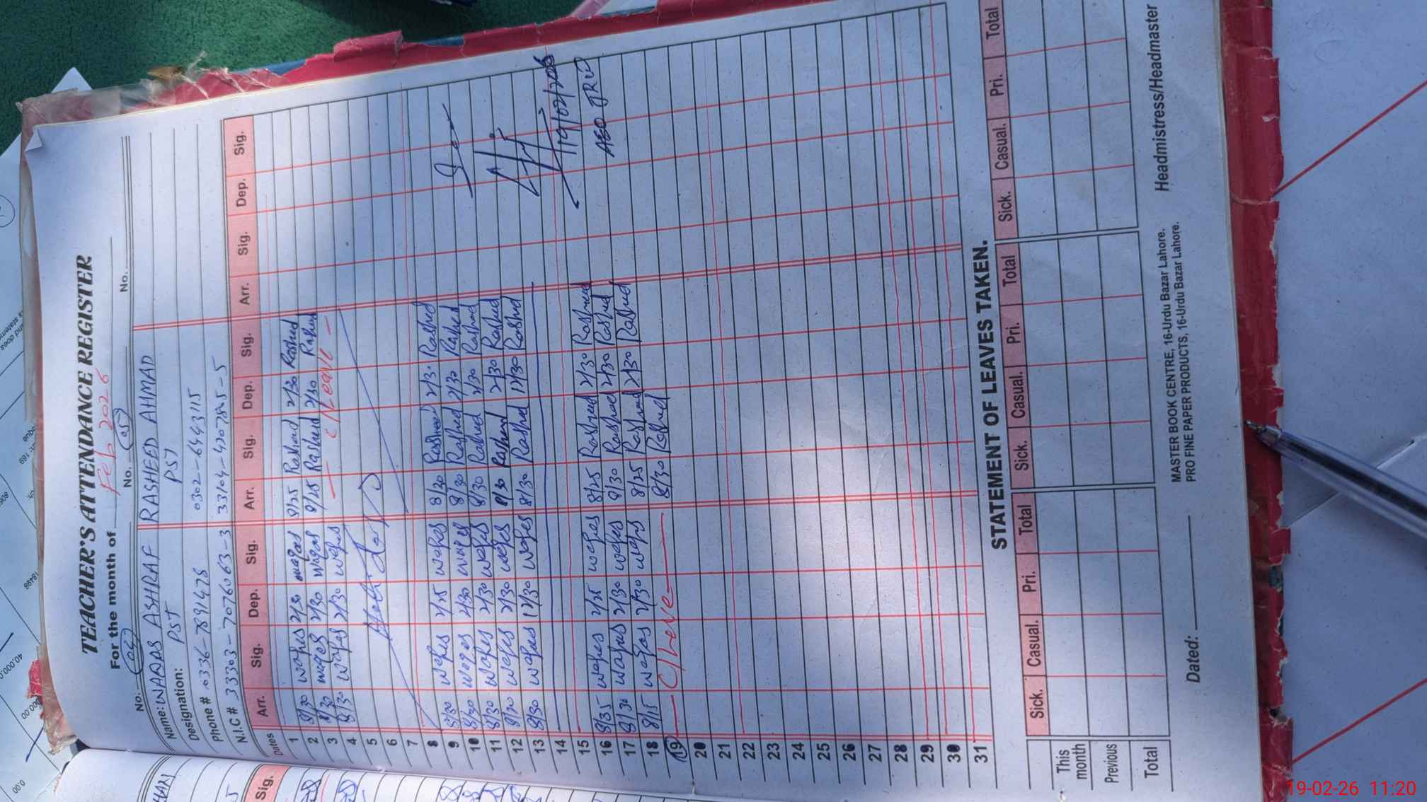 | Name: AT**** URRE**** Designation: (School Headmaster's/Headmistress's) PST( HM ) Phone/Cell Number: 03**** |