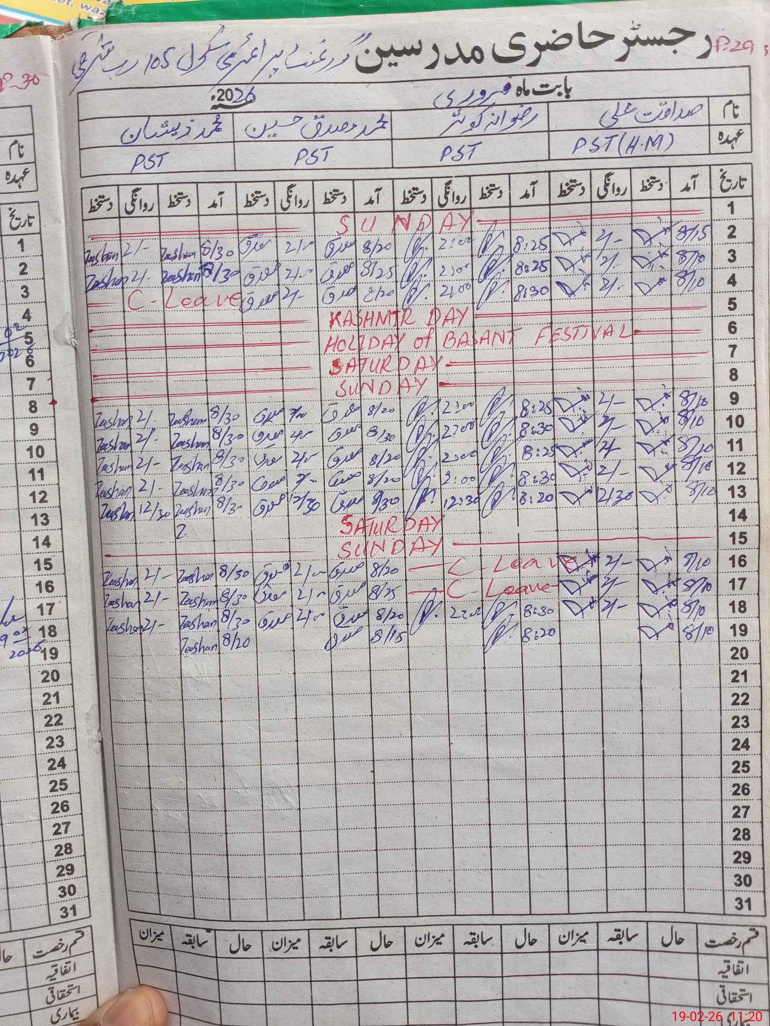 | Name: SA**** AL**** Designation: (School Headmaster's/Headmistress's) PST/PTC/JV Phone/Cell Number: 03**** |