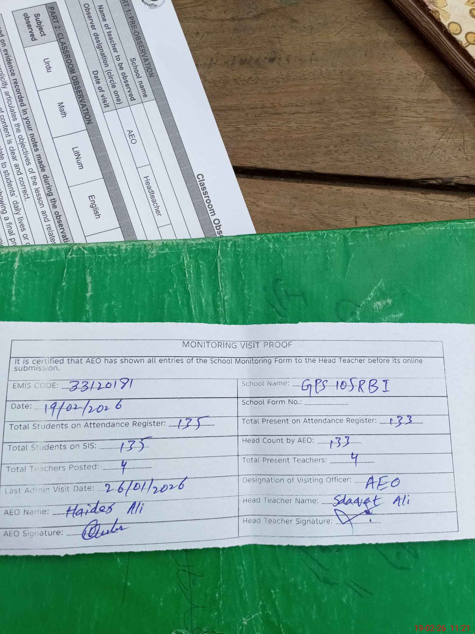 | EMIS Code: 33120181 | Name of School: GPS CHAK 105 RB I EAST | |||