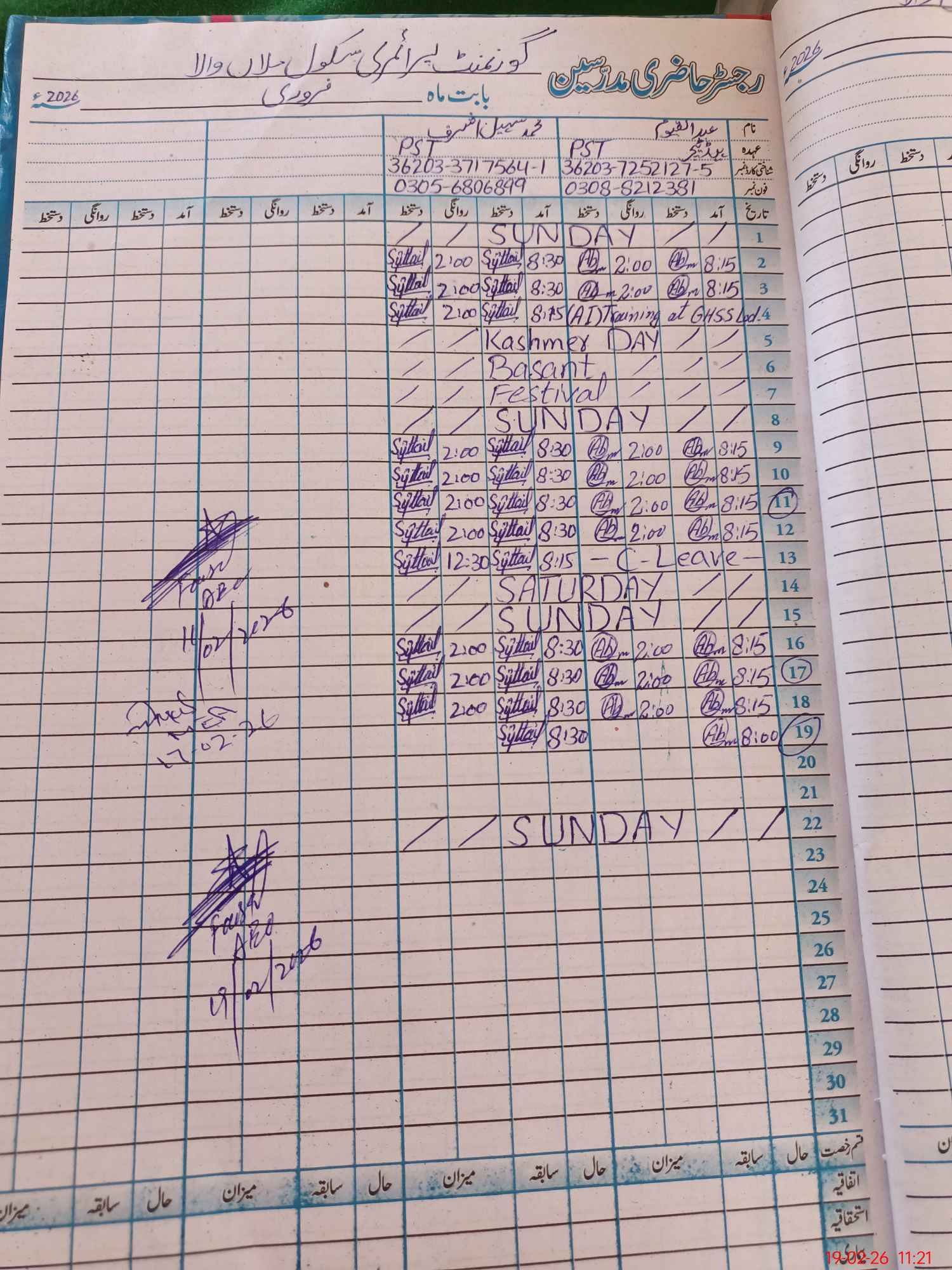 | CNIC | Full Name | Designation | R/C | Absence During Last Calender Month |